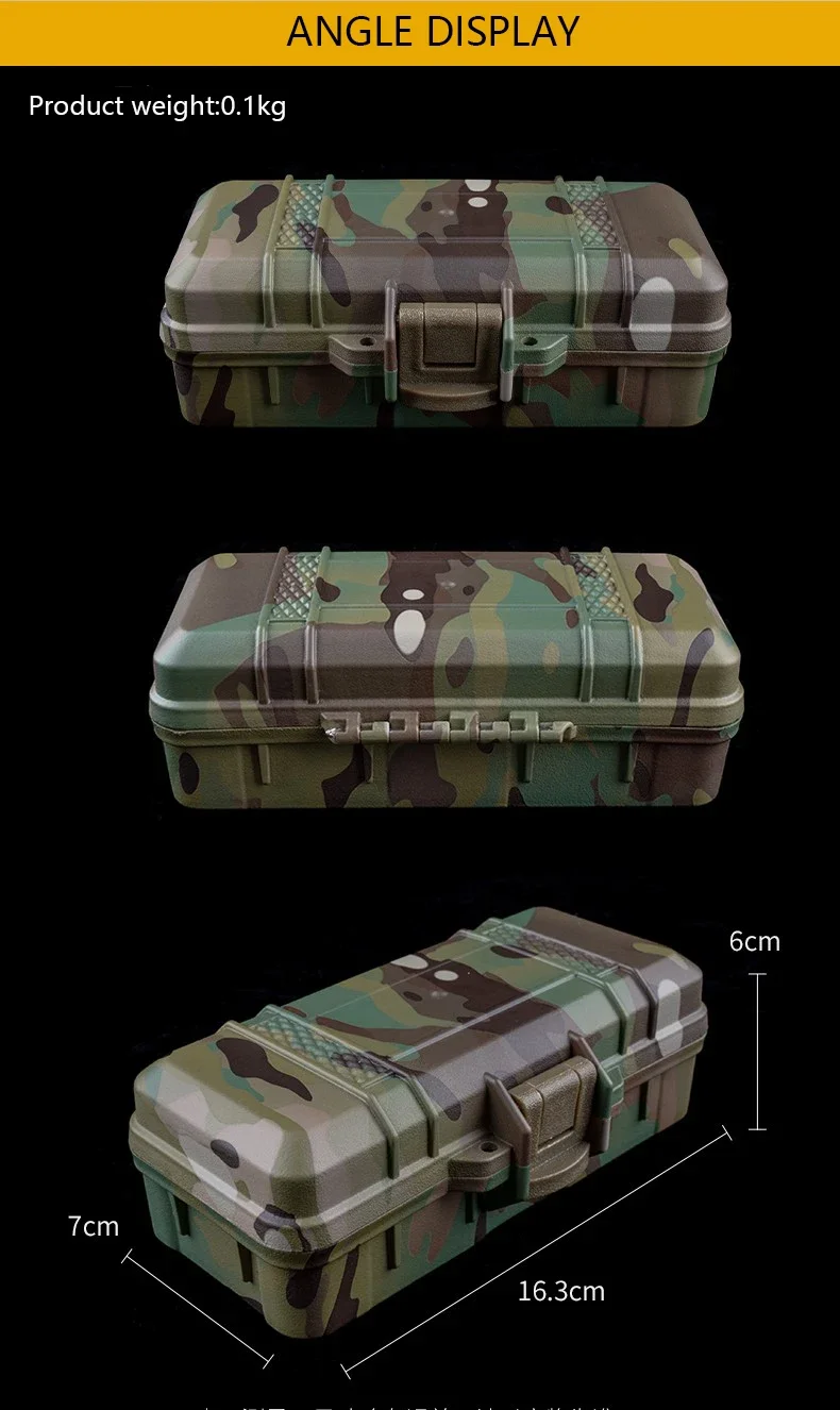 Caja de almacenamiento táctica de 15,2x6,3 cm, equipo de seguridad sellado con cerradura, caja de herramientas impermeable, estuche rígido de supervivencia al aire libre para caza y senderismo