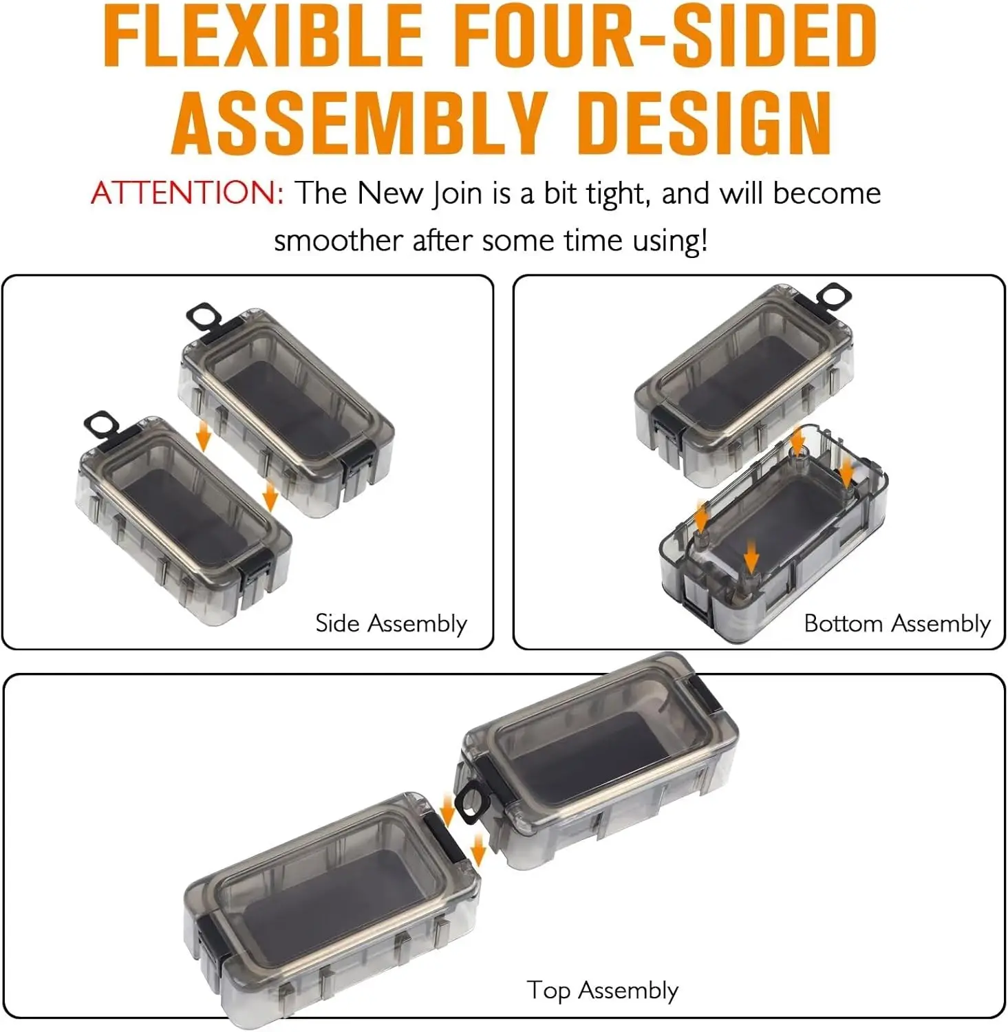 2. 【DISEÑO DE MONTAJE DE CUATRO LADOS FLEXIBLE】 Cada pequeña caja de aparejos de pesca se puede entrelazar entre sí, ensamblar de múltiples maneras, encajar de forma segura y permanecer en su lugar, ya que ensamblado no se deshaga fácilmente.Montaje de cuatro lados, uno encima del otro, uno al lado del otro o en línea recta.El organizador de la caja de aparejos se puede usar individualmente o ensamblar, dependiendo de lo que necesite llevar en ellas o del espacio que tenga para almacenamiento.