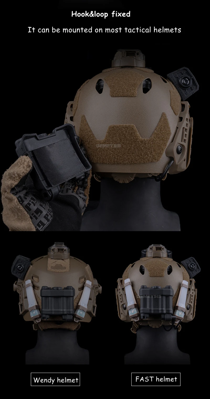 ●Gancho y bucle fijo.Se puede montar en la mayoría de los cascos tácticos.