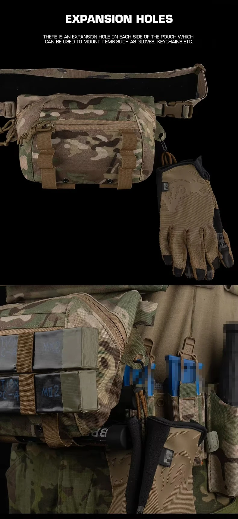 Bolsa táctica de malla para botella de agua, soporte para Walkie Talkie, paquete de almacenamiento de artículos diversos, chaleco, cinturón, accesorio para senderismo al aire libre