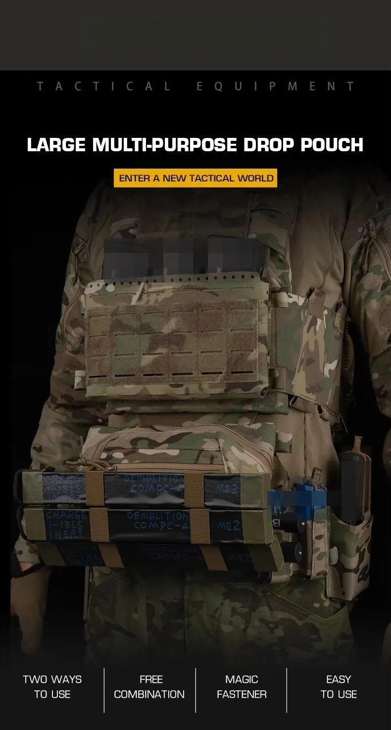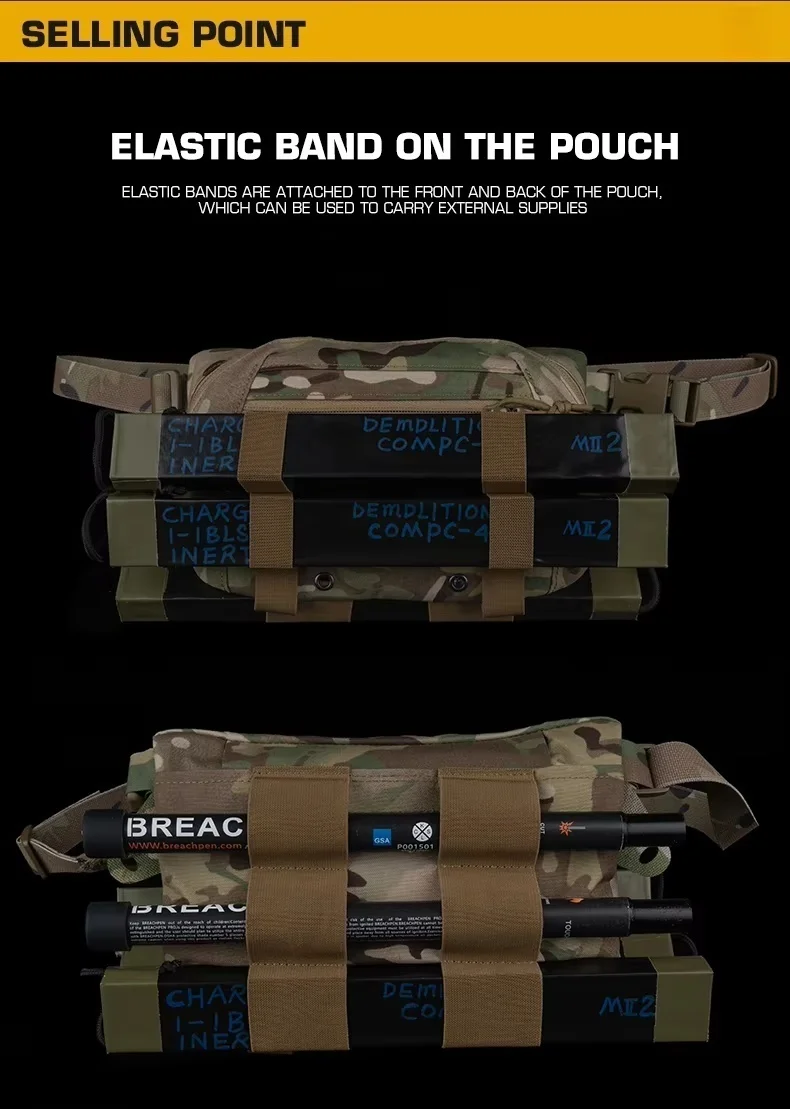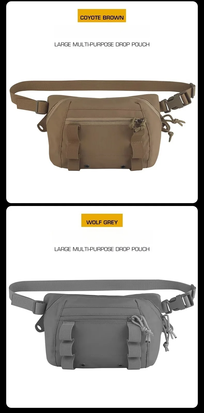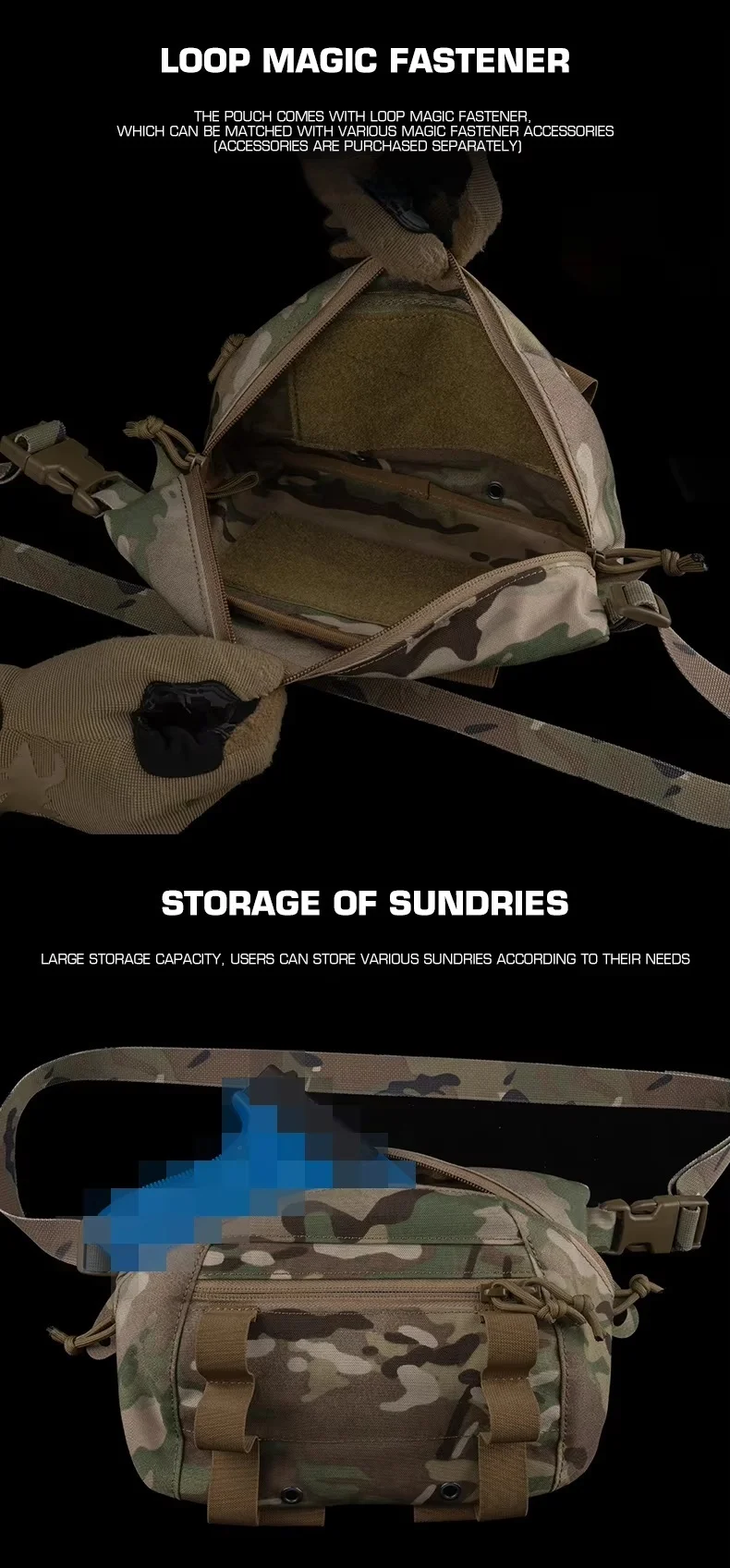 1. Riñonera táctica de tamaño mediano:Llena el espacio entre bolsas más pequeñas y más grandes, optimizadas para papeles tácticos/respetuosos.Cuenta con un compartimento principal contorneado con "media cremallera".