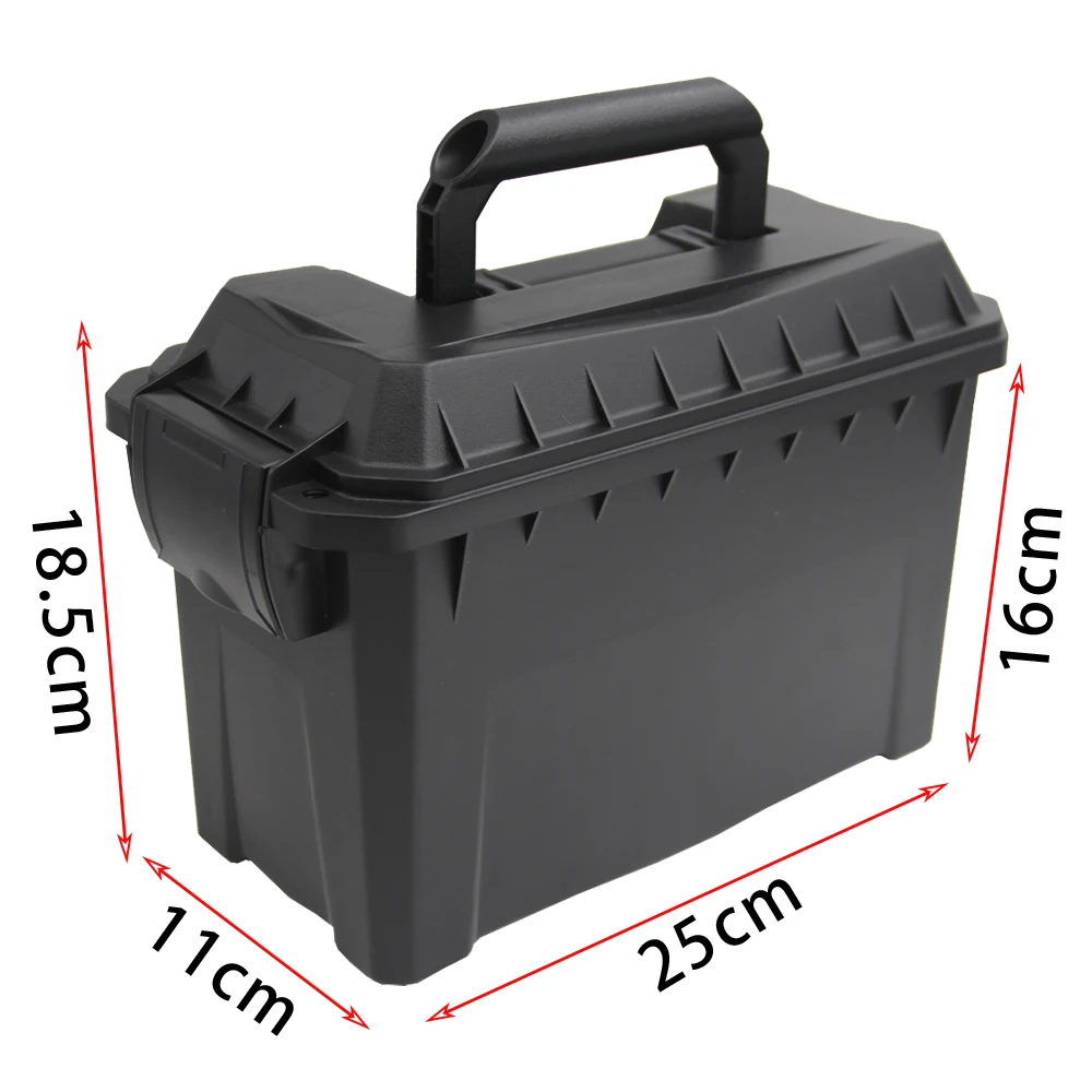La lata de munición está diseñada específicamente para almacenar sus municiones, equipos de caza o aparejos de pesca, y también puede proteger sus otras herramientas del agua mojada o la lluvia.