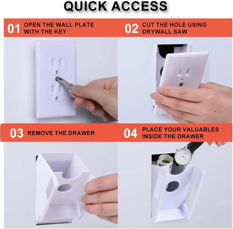 Caja de dinero oculta, contenedor de privacidad con enchufe falso con 2 llaves, almacenamiento seguro de joyería en efectivo, instalación rápida