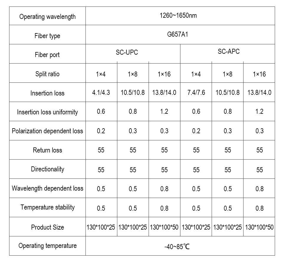 Caja divisora de fibra óptica PLC tipo SC APC, 1x4, 1x8 SC UPC, FTTH, 1x16