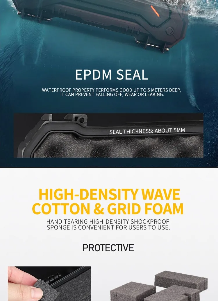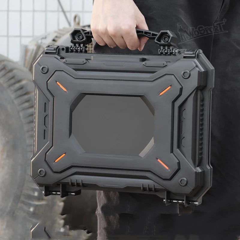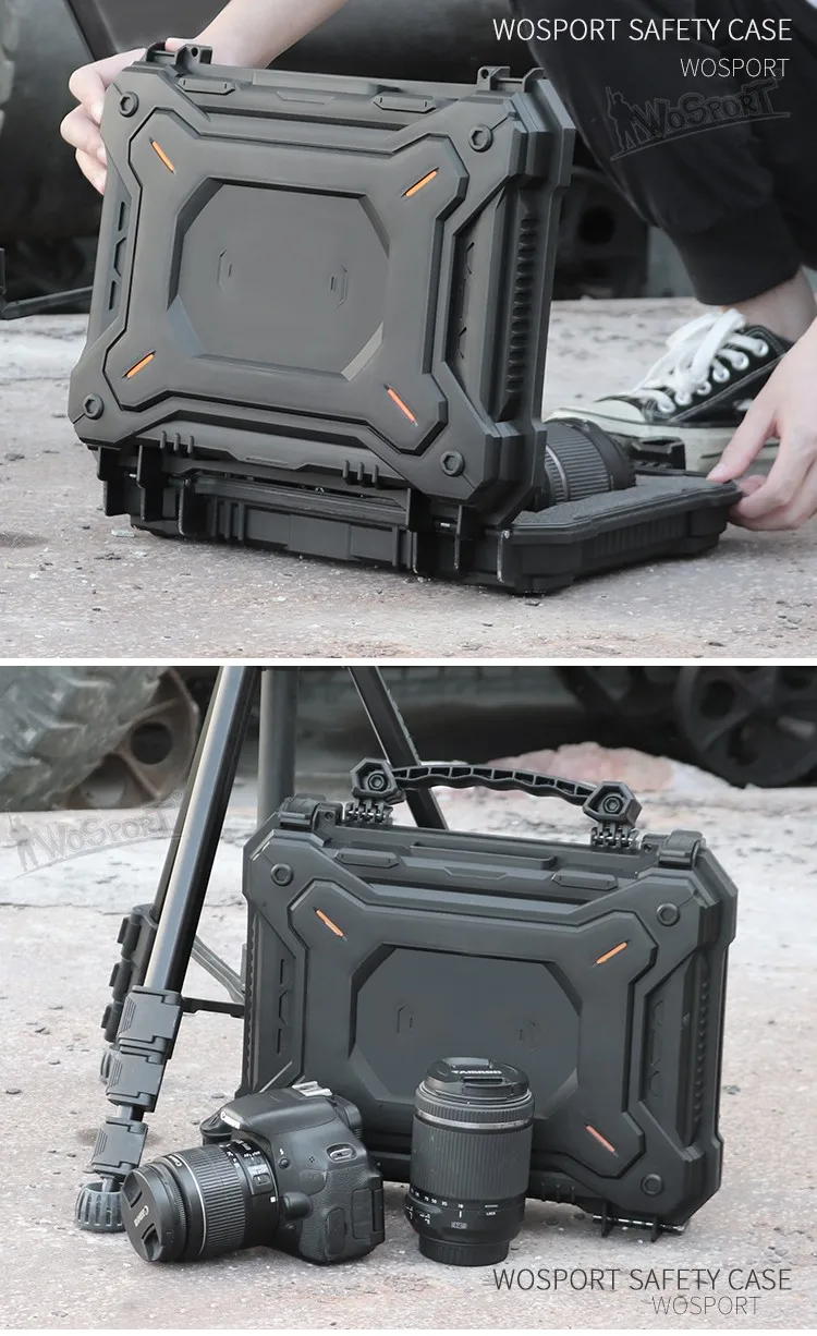 Caja de equipo de caza portátil para exteriores, caja de seguridad a prueba de polvo, impermeable y resistente a impactos, con esponja de corte, 32cm