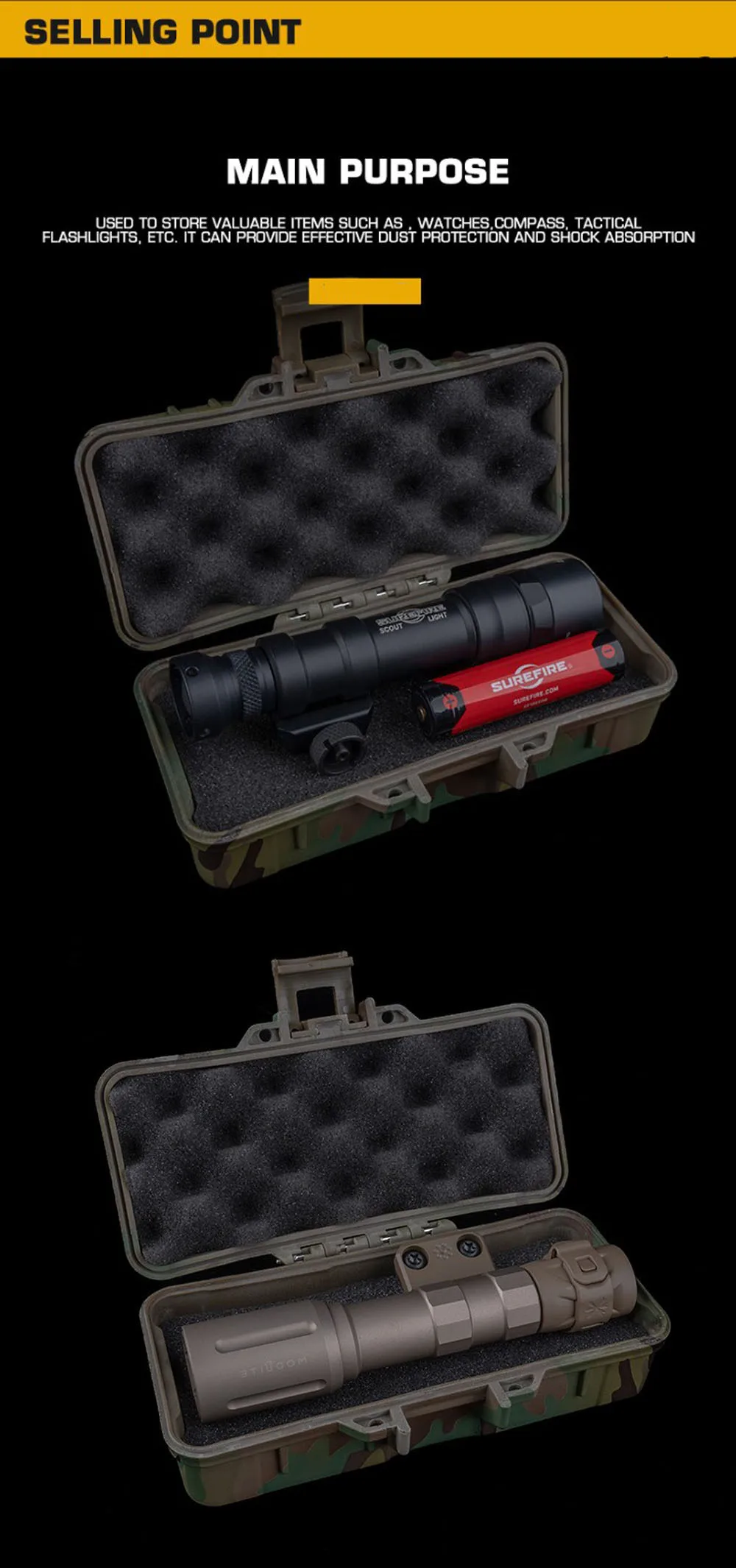 Caja impermeable a prueba de golpes para exteriores con almohadillas de protección de esponja, linterna táctica, almacenamiento, caja de herramientas de supervivencia para acampar, 15,2 * 6,3 cm