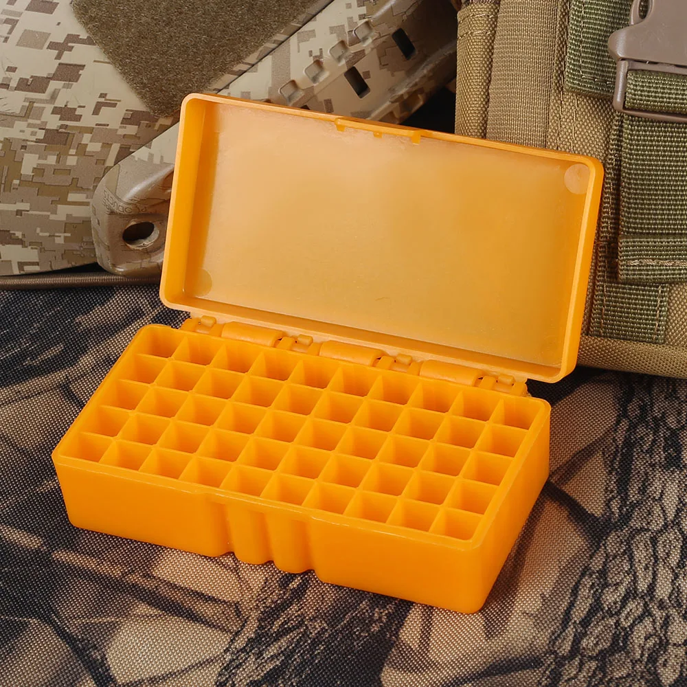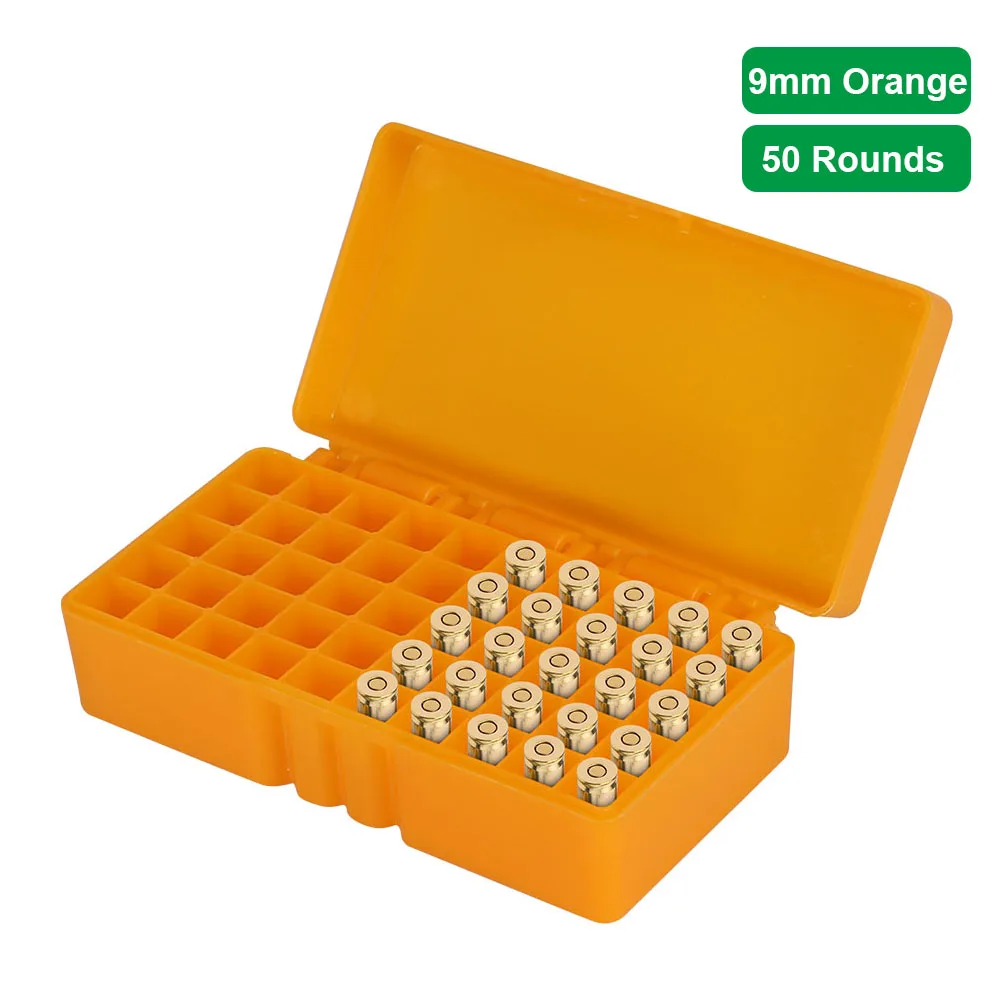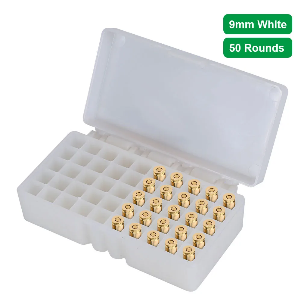 Caja de munición de 50/100 rondas, 9mm/.223/.38Super Flip-Top, funda tipo bala, cartucho para rifle de pistola, caja de almacenamiento de transporte, accesorios de caza