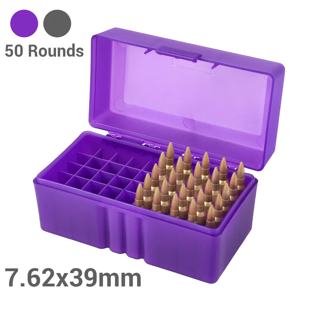 Caja de munición de 50 rondas, caja de soporte de carcasa de bala de 7,62x39mm, caja de almacenamiento de cartucho de Rifle, caja de almacenamiento de transporte de munición de Rifle de pistola