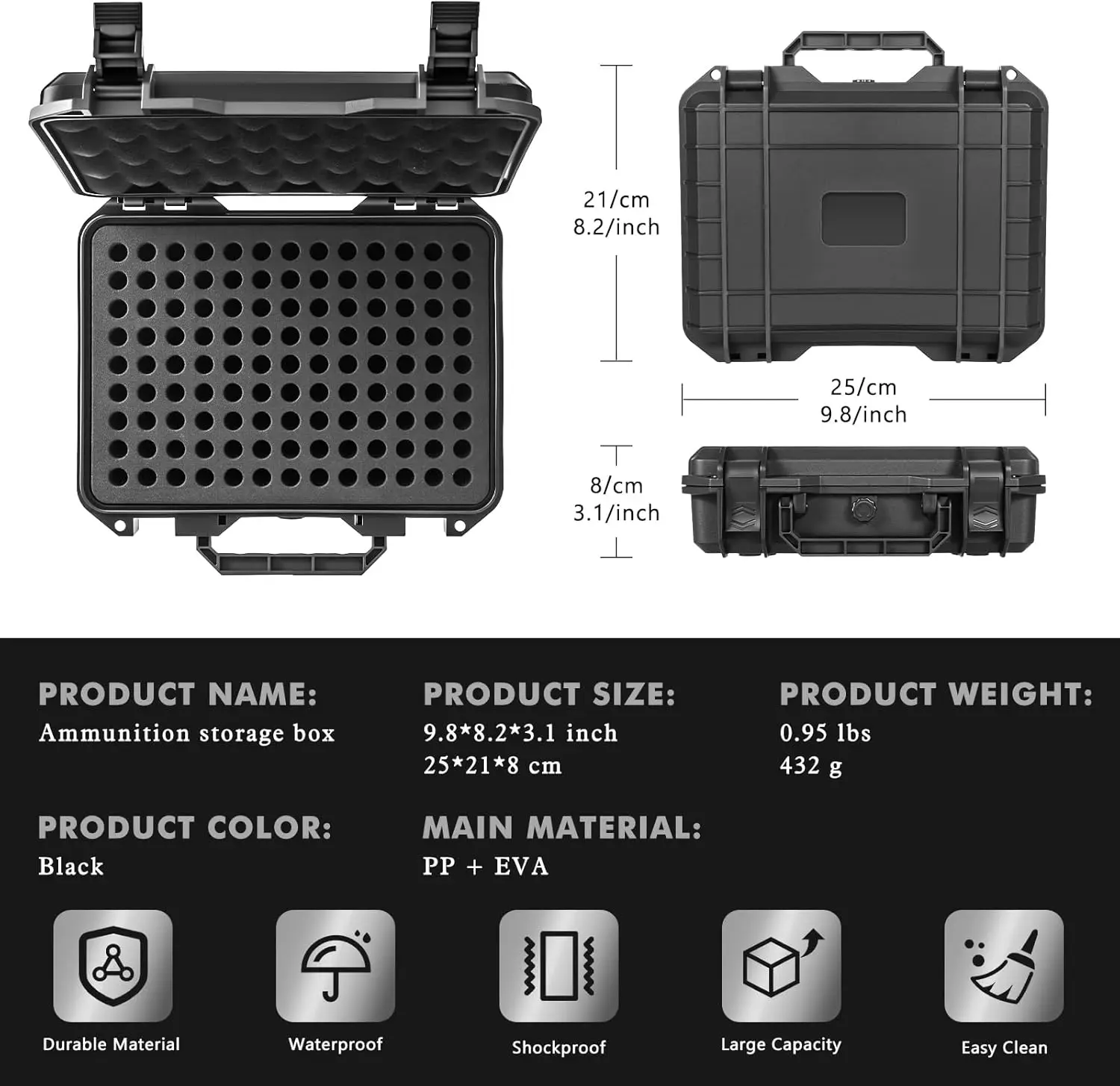 4. 【Diseño liviano y portátil】 Con dimensiones compactas de solo 9,8 x 8,2 x 3,1 pulgadas y una estructura liviana de 0,95 libras, el estuche cuenta con un asa resistente para facilitar su transporte, cabe cómodamente en mochilas o vehículos.El tamaño estandarizado permite un apilamiento eficiente y un almacenamiento que ahorra espacio.