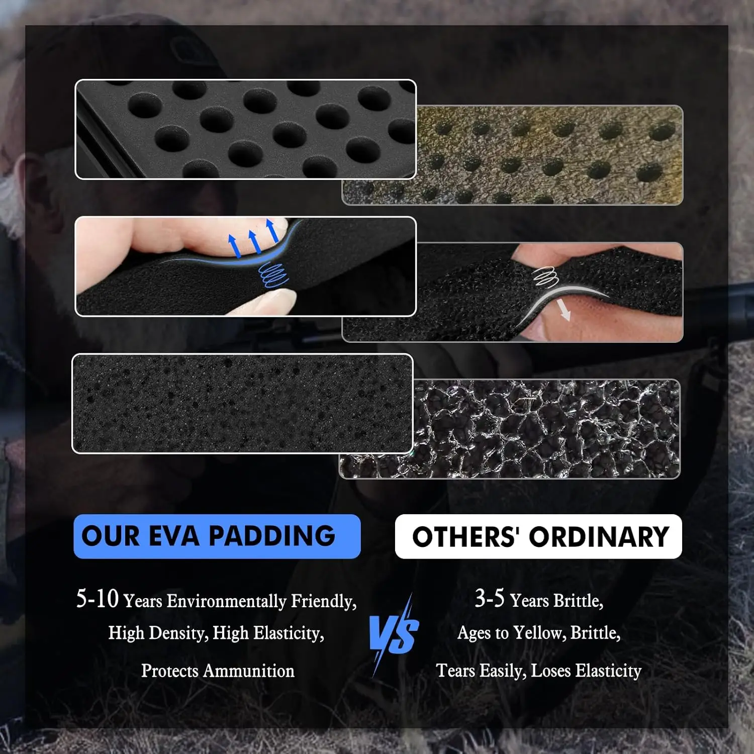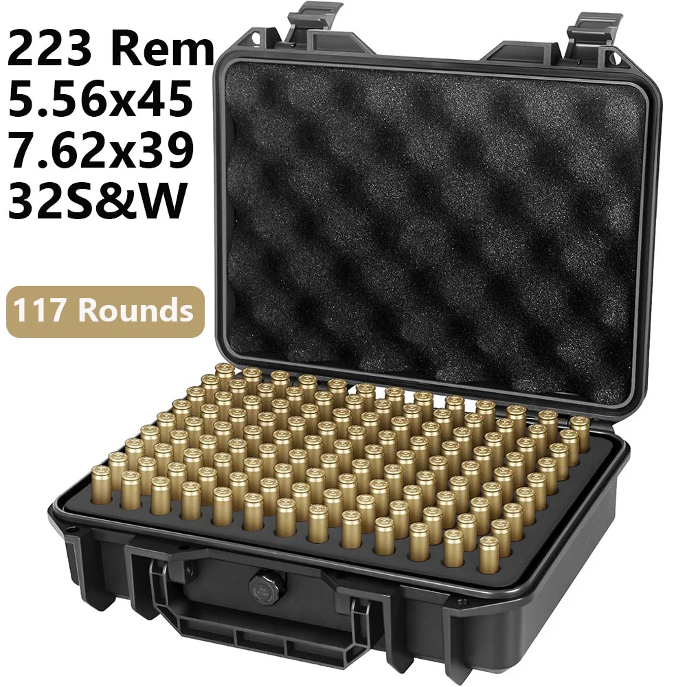 1. 【Capacidad extragrande y compatibilidad de múltiples calibres】 Almacena hasta 117 rondas de munición, ideal para entrenamiento de tiro de alta intensidad o necesidades de caza.El diseño de espuma mejorado es compatible con múltiples calibres como 223Rem, 5,56x45 mm, 7,62x39 mm, 32 S y W.Permitiendo a los usuarios ajustar fácilmente las ranuras para balas para un ajuste seguro.Esto garantiza que la munición se mantenga estable y evita el deslizamiento, resolviendo eficazmente los problemas de compatibilidad.