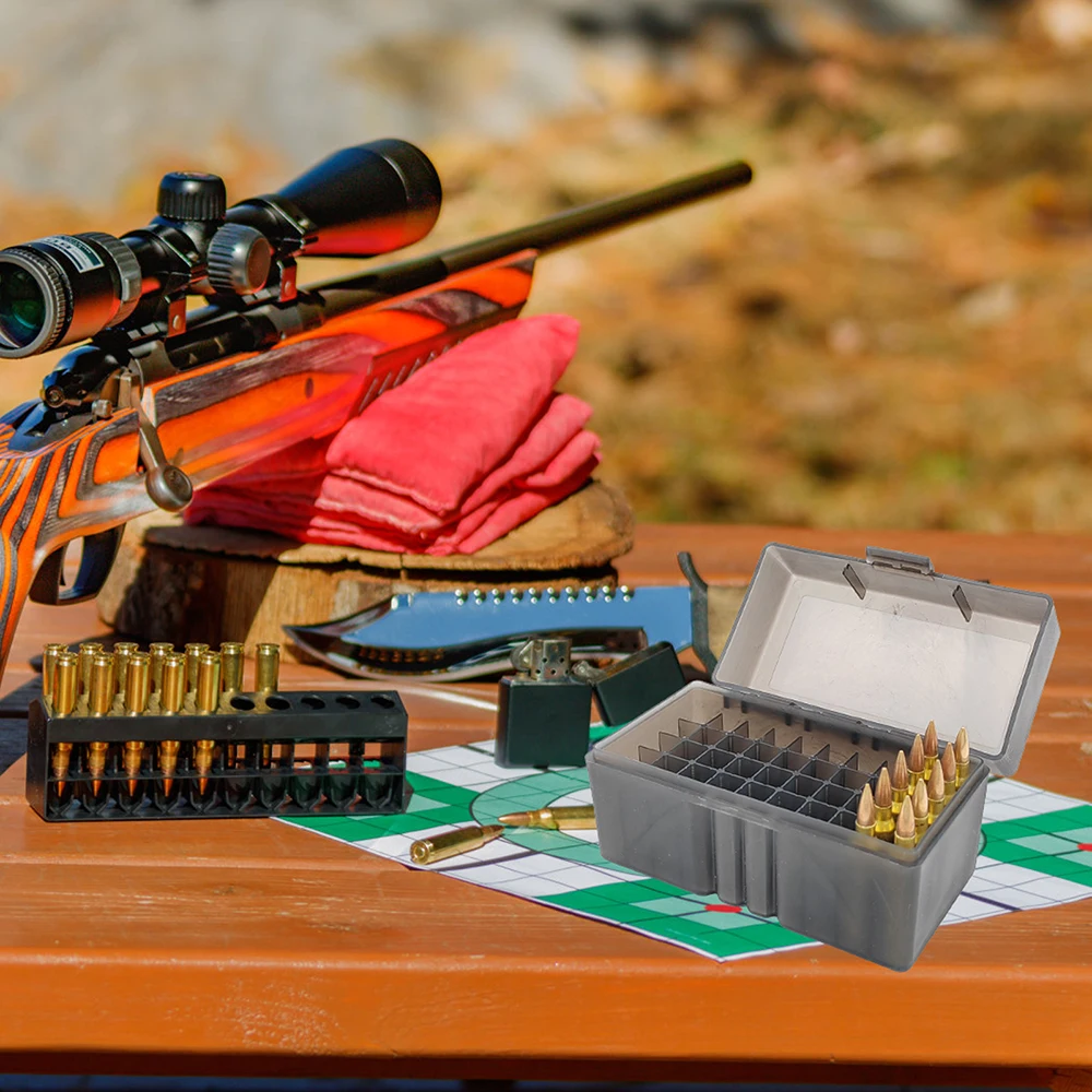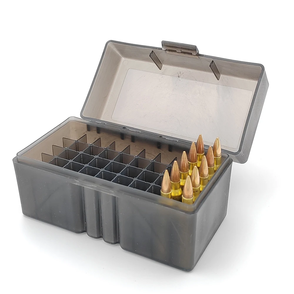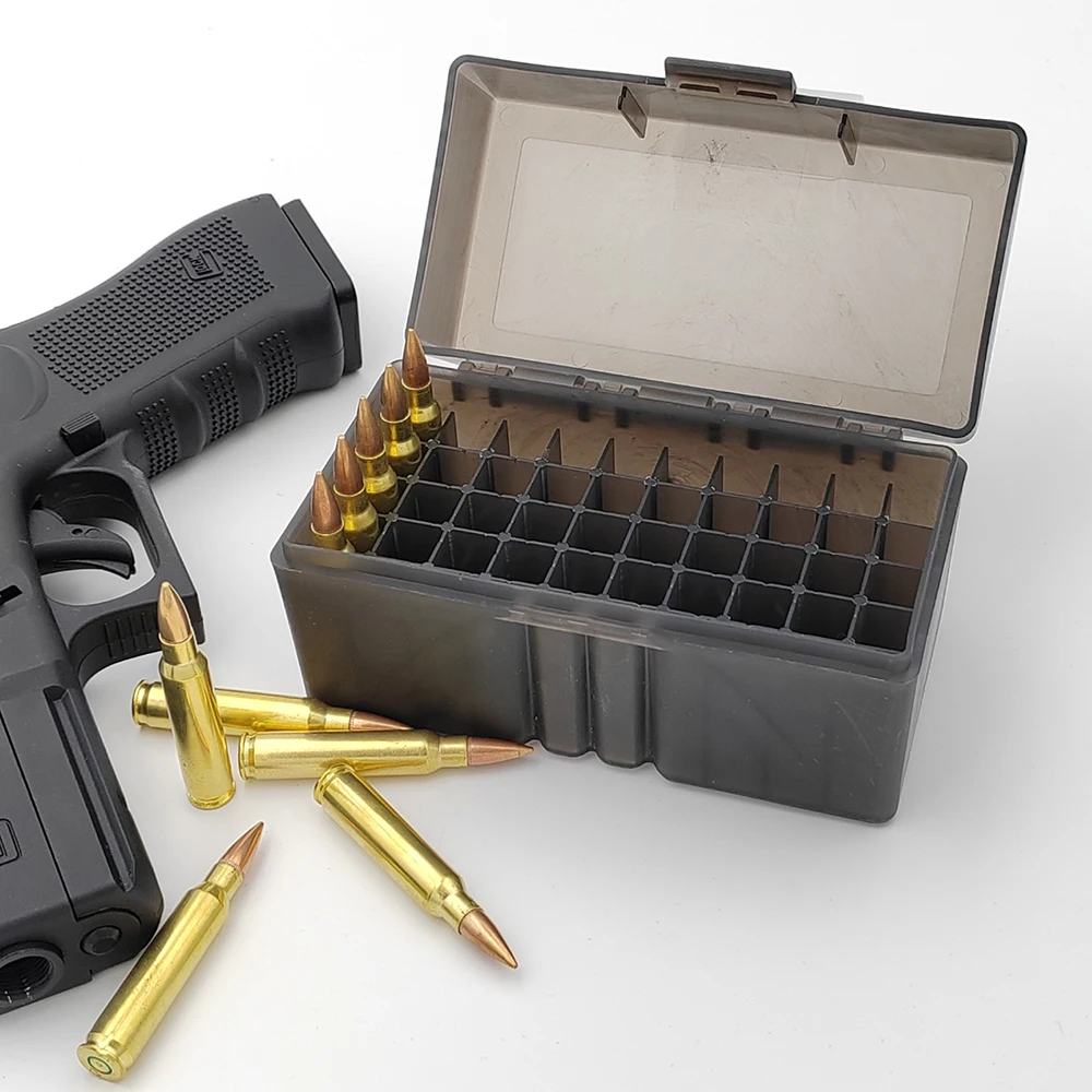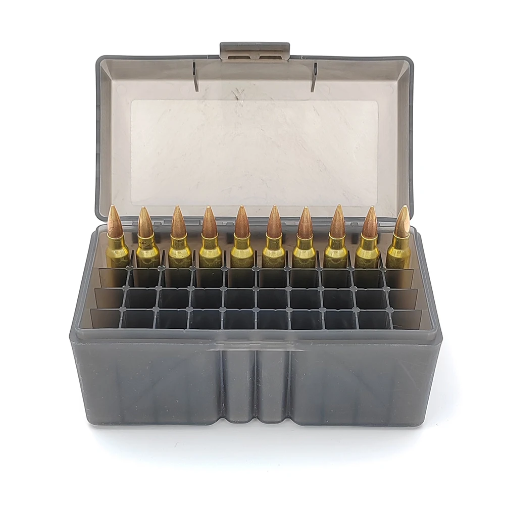 Caja de munición táctica de 50 rondas, caja de soporte de carcasa de bala, estuche de almacenamiento de cartuchos de Rifle, caja de almacenamiento de transporte de munición para Rifle de pistola 223, 223.