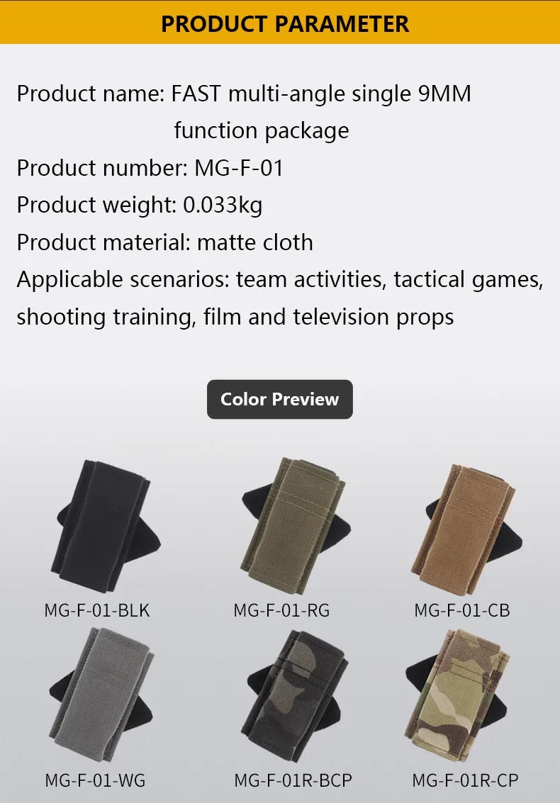 Caja de revistas multifunción individual táctica, bolsa de equipo de accesorios, paquete de función de camuflaje individual multiángulo rápido de 9mm