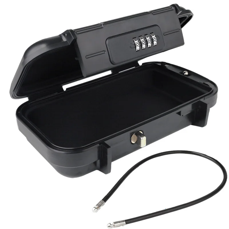 Caja de seguridad con contraseña con tamaño portátil y diseño seguro. Puede ser ampliamente utilizado en una variedad de lugares: sillas de playa, aros de baloncesto, bastidores de fútbol, bicicletas, cintas de correr y más. Ideal para acampar al aire libre y viajes a la playa. Regalo ideal para familiares y amigos.