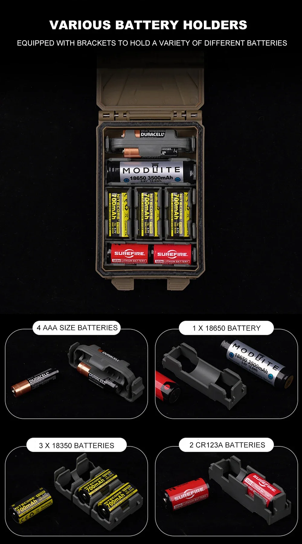 Caja táctica para 18650/AAA/CR123A/18350 Almacenamiento de batería Molle Airsoft Chaleco de caza llevar soporte de batería equipo Modular