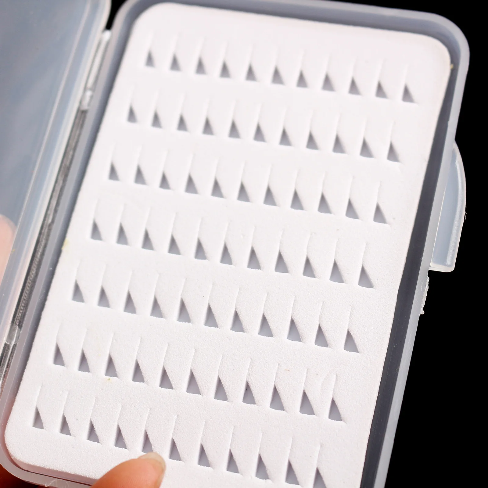 4.Está equipado con ranuras de espuma en el interior, que pueden fijar firmemente varios tamaños y tipos de cebos para moscas, evitando que se enreden o se dañen durante el transporte.