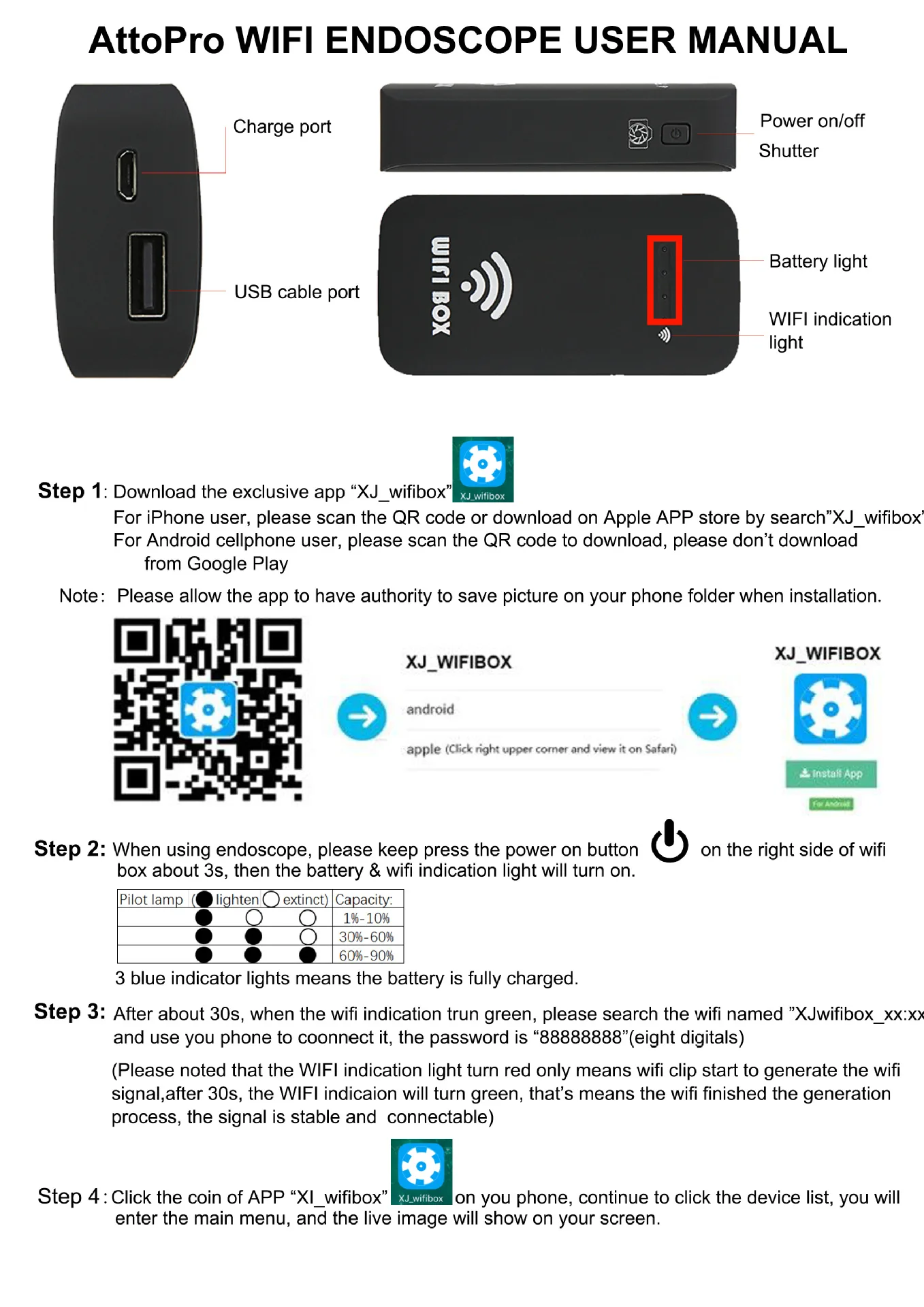 Caja Wifi para endoscopio USB, estetoscopio, microscopios, cámara iOS Android 18650, batería recargable de 1800mAH