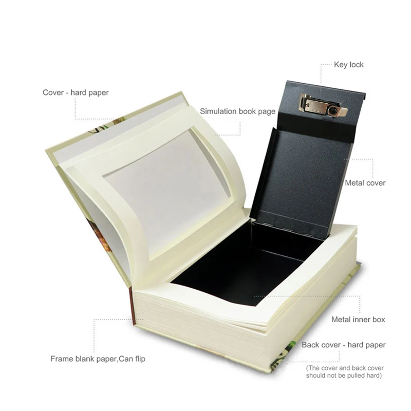 Caja de Seguridad de libro cerradura de llave tipo Libro Secreto de alta calidad caja de seguridad oculta de seguridad simulación de acero de Metal estilo de libro clásico tamaño M