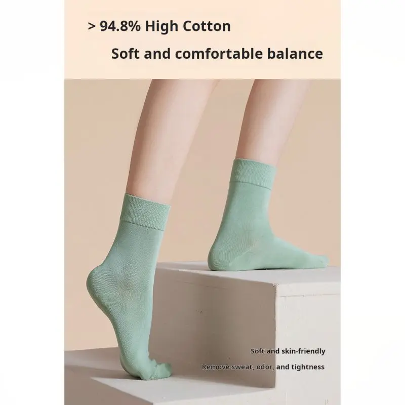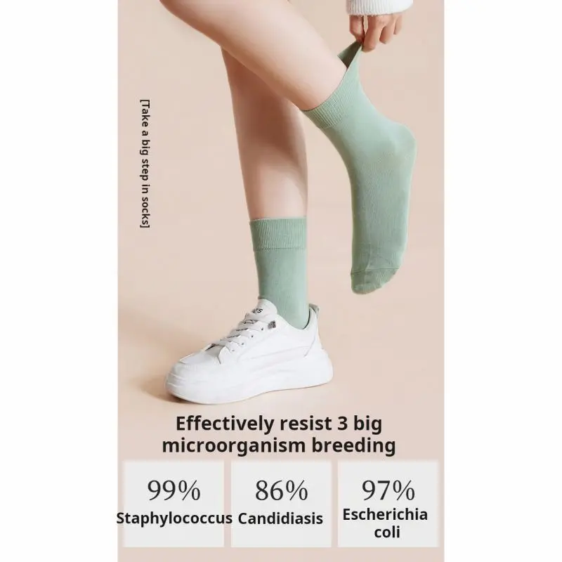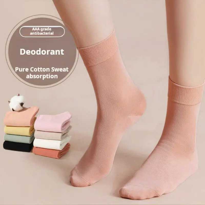 Descripción del título: Calcetines de algodón para mujer, medias medianas de algodón antibacteriano de color sólido para mujer, calcetines de algodón sin hueso