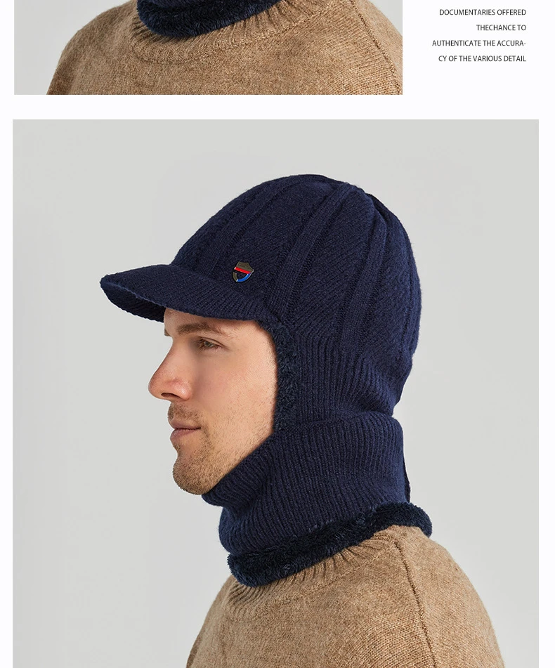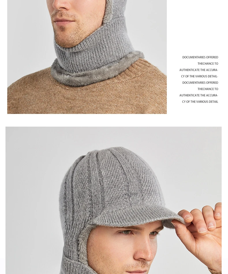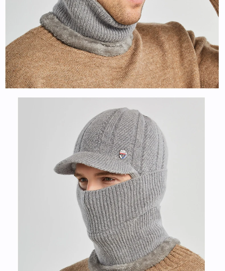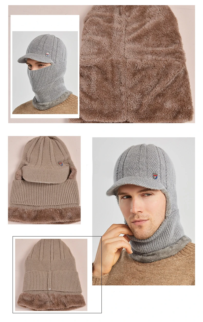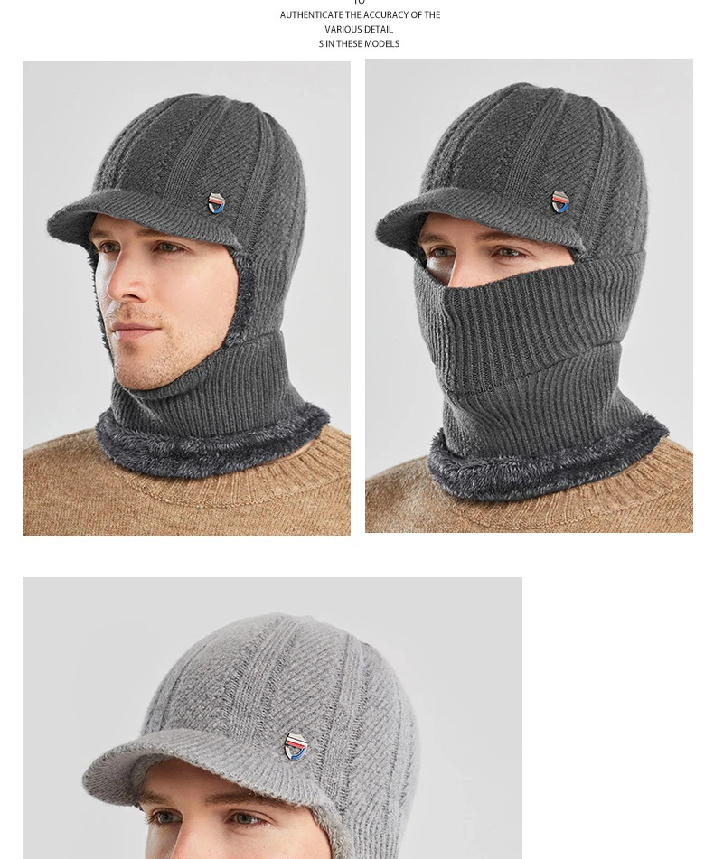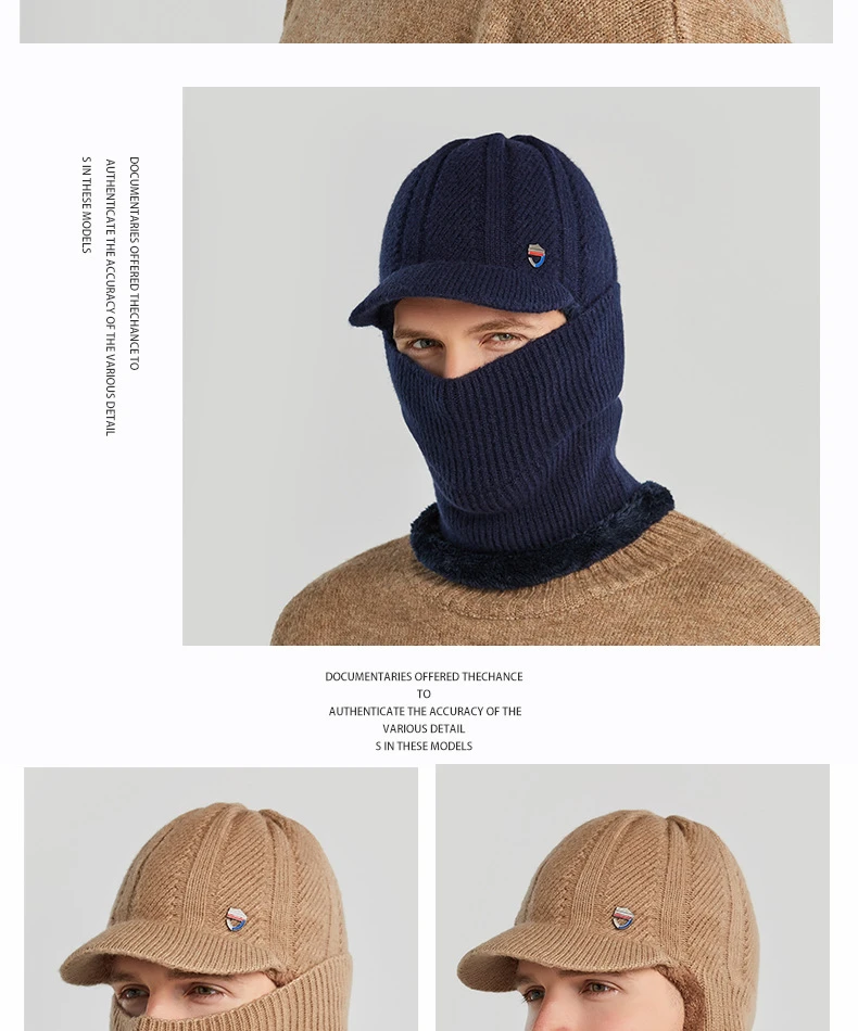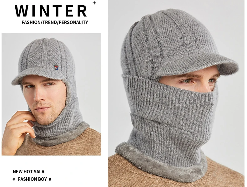 Cálidos gorros de lana para hombre, máscara facial, bufanda para el cuello, gorros de esquí, protección para los oídos, gorros deportivos a prueba de viento, gorro de punto sólido, Invierno