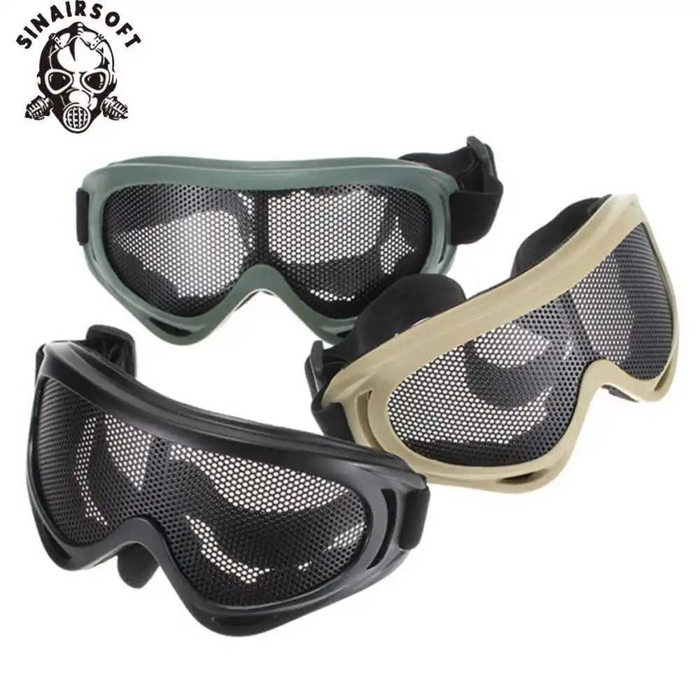 Nueva gran oferta al aire libre caza Airsoft Net resistencia táctica a los golpes ojos protección deportes al aire libre gafas de malla de Metal