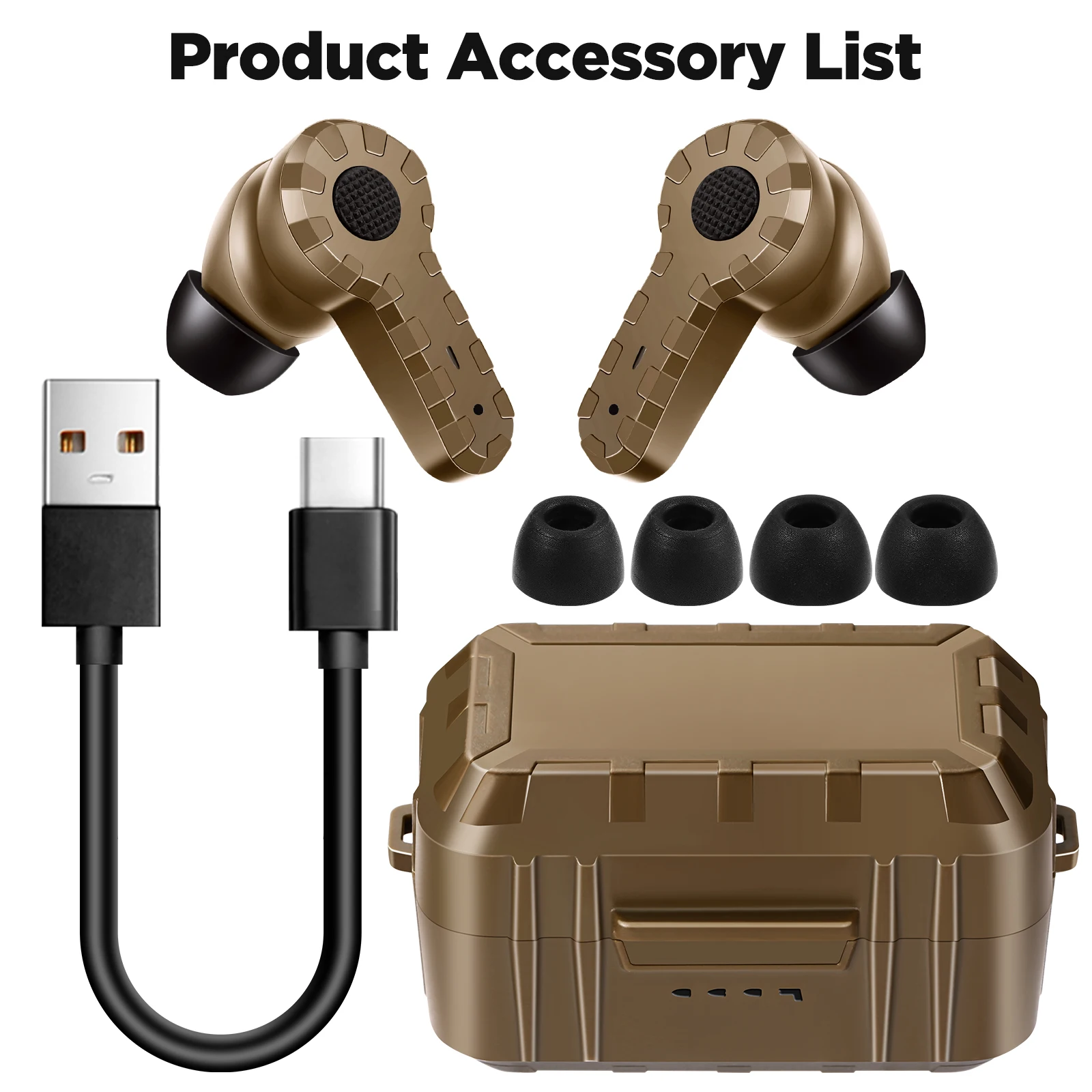 El tapón auditivo electrónico es un producto de protección auditiva más conveniente y excelente.Adopta protección auditiva electrónica interna, que puede ayudar a reducir el ruido continuo y el ruido impulsivo, al tiempo que suprime los ruidos peligrosos superiores a 82 dB y mejora la percepción y la comunicación en entornos ruidosos.Hay dos modos de interior y exterior para ajustar el sonido ambiental.Es adecuado para su uso en entornos con mucho ruido como entrenamiento de tiro, aplicación de la ley, fabricación y construcción, lo que hace que el trabajo sea cómodo y eficiente.La duración de la batería puede ser de hasta 8 horas y hay un recordatorio de batería baja.El estuche de carga portátil no necesita reemplazar la batería, lo cual es conveniente para cargar.En comparación con los auriculares tradicionales con cancelación de ruido, que son más pequeños y livianos, los tapones para los oídos electrónicos combinan compatibilidad, portabilidad y comodidad.Viene con un cable de retención de silicona para evitar pérdidas, y accesorios como fundas para auriculares y almohadillas de diferentes tamaños son convenientes para usuarios con diferentes tamaños de oreja.