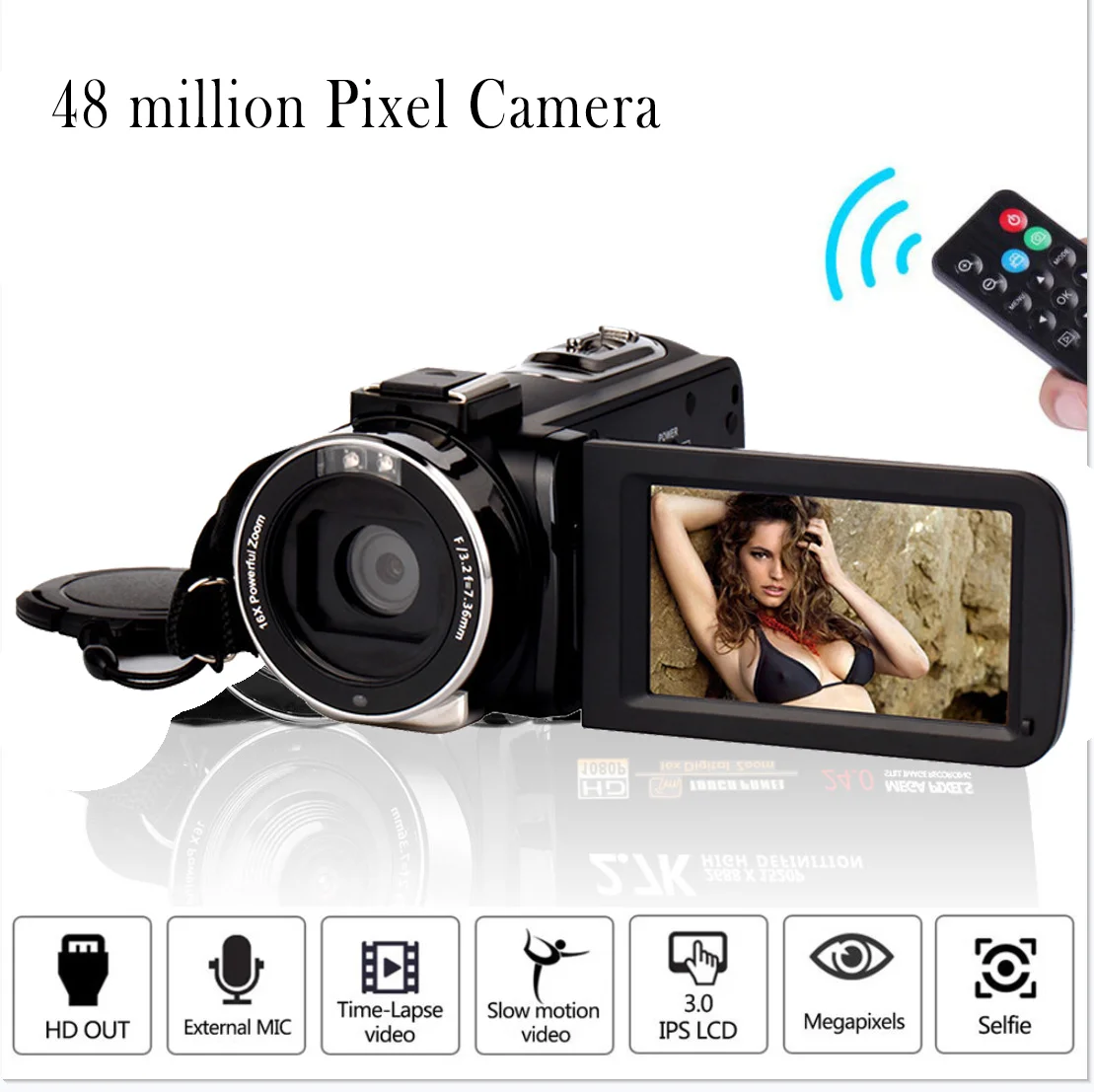Full HD 2,7 K, 1080P 30FPS y 48MP con zoom digital 16X y pantalla táctil IPS de 3,0 pulgadas, rotación de 270 °;