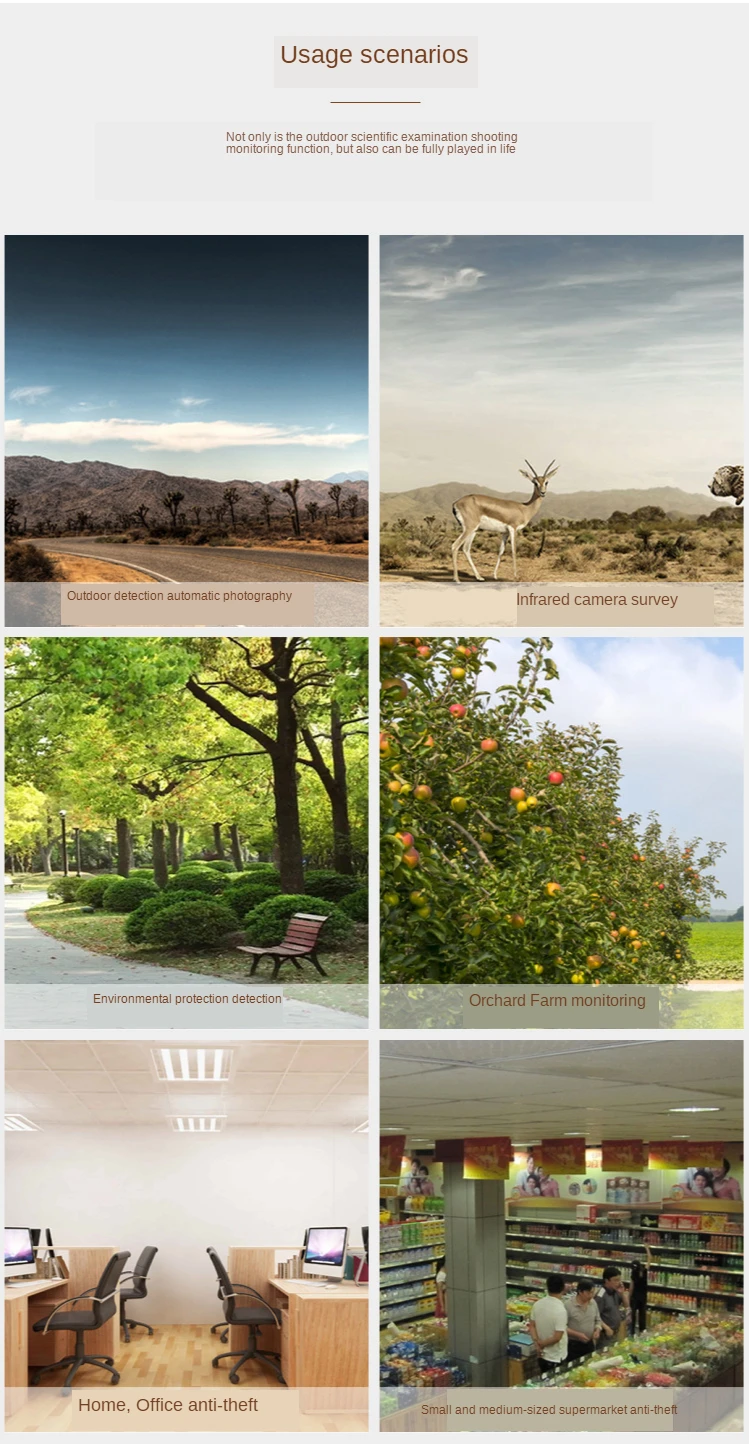 Aplicación:A. Cámara de vigilancia instantánea para el hogar, la Oficina, el sitio de construcción y el almacén, etc.