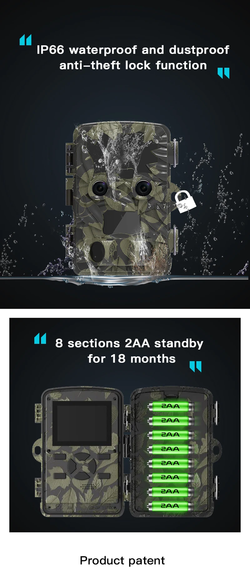 【Diseño único de cámara dual】 La cámara de vida silvestre HD de 8 megapíxeles funciona durante el día y la cámara de visión nocturna con luz de estrellas de alta sensibilidad se activa por la noche.La cámara Wildlife H8201 supera la cámara única convencional y logra una excelente visión nocturna con bajo nivel de ruido y alta resolución.