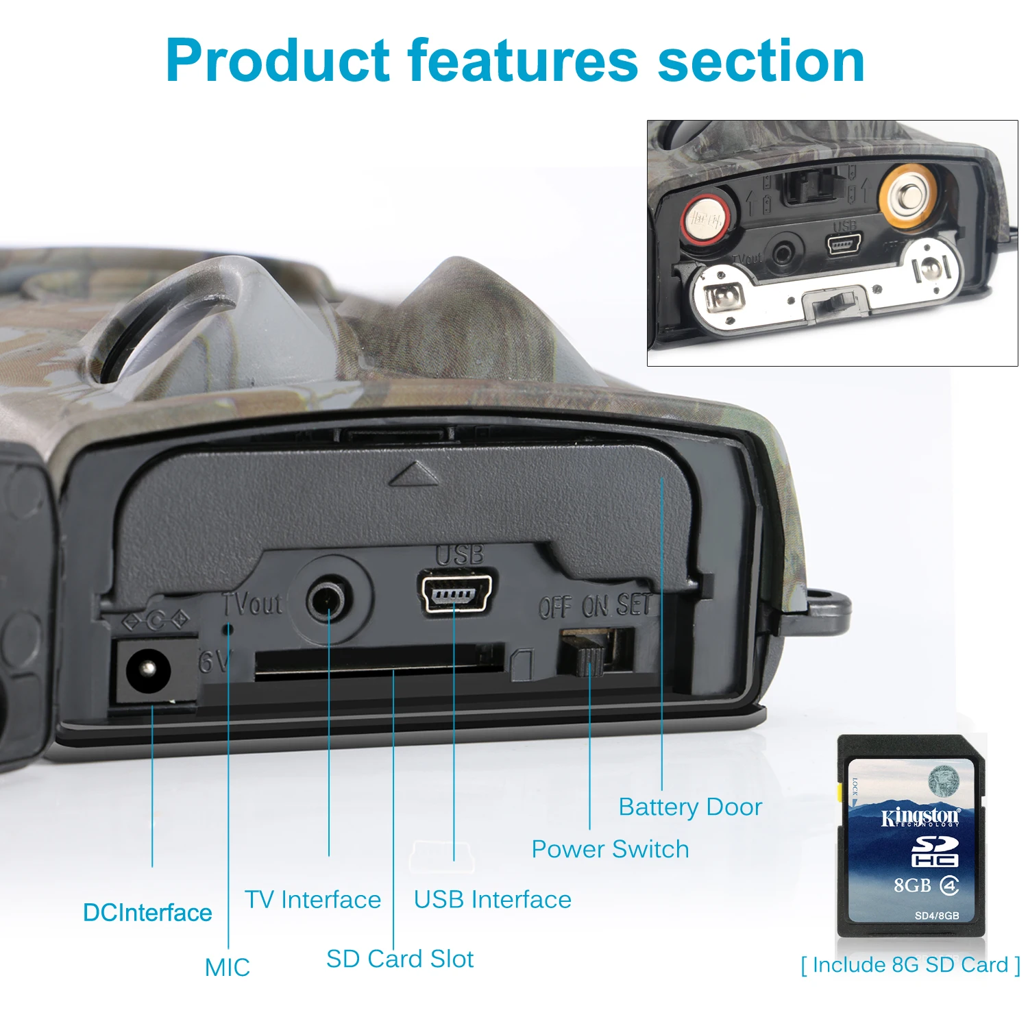 Cámara de caza HD 1080P para exteriores, visión nocturna, videovigilancia, cámara de rastreo de vida silvestre IP66, resistente al agua