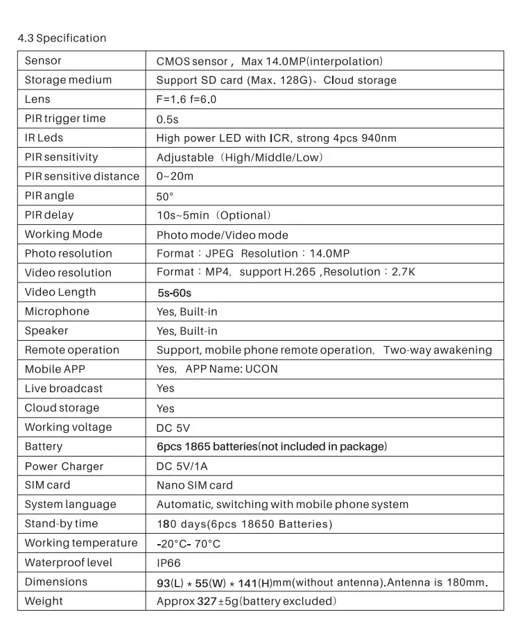 Duración de la batería: 12 meses en espera, aproximadamente 2 meses de uso real sin panel solar
