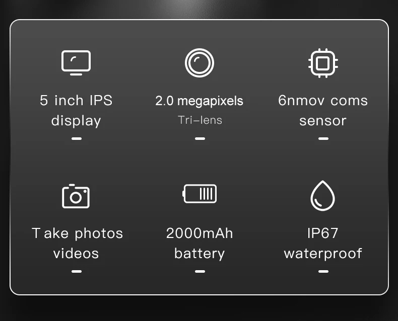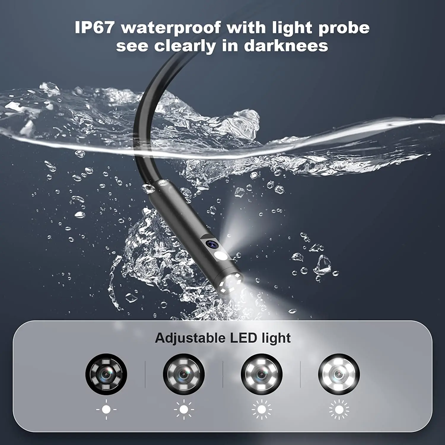Cámara endoscópica de doble lente, boroscopio Industrial con pantalla IPS de 5 pulgadas, inspección de tuberías de coche, 6 LED ajustables, 1080P y 8mm