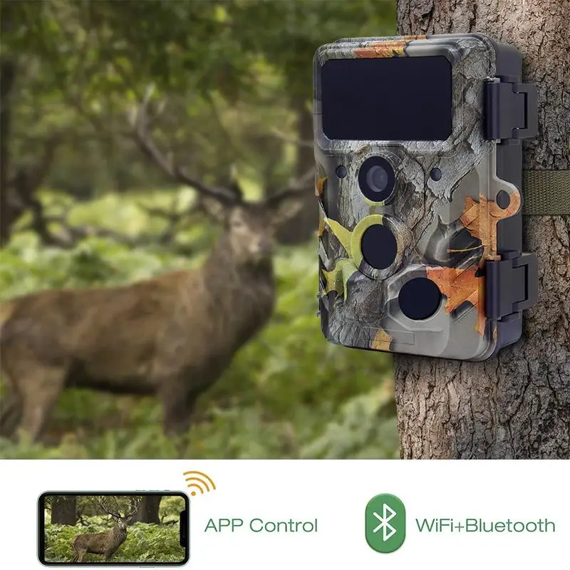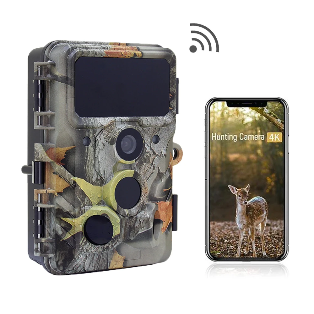 La cámara de rastreo con WIFI integrado y la función de control de la aplicación, descargue la aplicación (Cámara de caza 4K) en su teléfono móvil y luego conéctese con WIFI. Puedes ajustar la configuración para ver o descargar la foto y el vídeo directamente en el teléfono. Esta cámara de rastreo no es una webcam, el control de la aplicación tiene límites de rango.