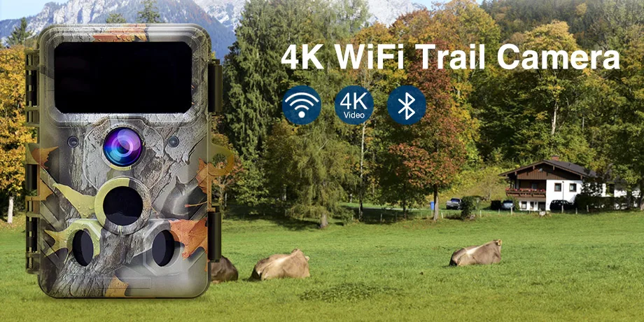 Cámara de rastreo de caza con WiFi, vídeo 4K, UHD, cámara infrarroja de 30MP, cámaras de vigilancia de vida salvaje, resistente al agua, IP66