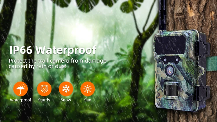 Funciones móviles: Opera en una red 4G LTE nacional Comunicación 4G con función push en tiempo real al servidor en la nube * Admite recuperación de fotografías y videos de alta definición a través de 4G * Sube fotos al servidor en la nube, accesible vía APP móvil * La aplicación es compatible con sistemas Android/IOS * El usuario puede cambiar la configuración de la cámara a través de la aplicación móvil * La aplicación puede monitorear el estado de la cámara (nivel de batería, capacidad de la tarjeta SD, intensidad de la señal 4G) y verificar fotos desde casa. * Una aplicación puede acceder a varias fotos de cámara * Fotos almacenadas en la nube para comprobarlas y compartirlas fácilmente Características de la cámara: * Sensor de imagen CMOS de 1/3" y 4 megas * Parámetros de la lente: f=4,0 mm, F/NO=1,6, FOV=89° * Resolución de la foto: 8MP, hasta 32MP (interpolado) * Admite grabación de vídeo Ultra HD de 2,7K * Resoluciones de vídeo: 2560×1440@30fps; 1920×1080@30fps; 1280×720@30fps * 2 linternas infrarrojas de alta potencia con un alcance efectivo de 20 m (850 nm) * Pantalla LCD de 2,0" * Diseño de filtro automático: Color durante el día, blanco y negro por la noche * Rango de detección PIR (infrarrojo piroeléctrico): 60°20 m * Velocidad de disparo: 0,4 segundos * Operación conveniente del menú del sistema * Hora, fecha, temperatura, fase lunar y nombre de la cámara se muestran como marcas de agua en las fotos * Protección con contraseña para encender * Detección de temperatura ambiental incorporada * Micrófono y altavoz integrados * Interfaz USB2.0 TYPE-C * Admite tarjeta de memoria TF (Micro SD) de hasta 128 GB * Corriente de espera ultrabaja, tiempo de espera de hasta 3 meses * Diseño IP66 resistente al agua y al polvo