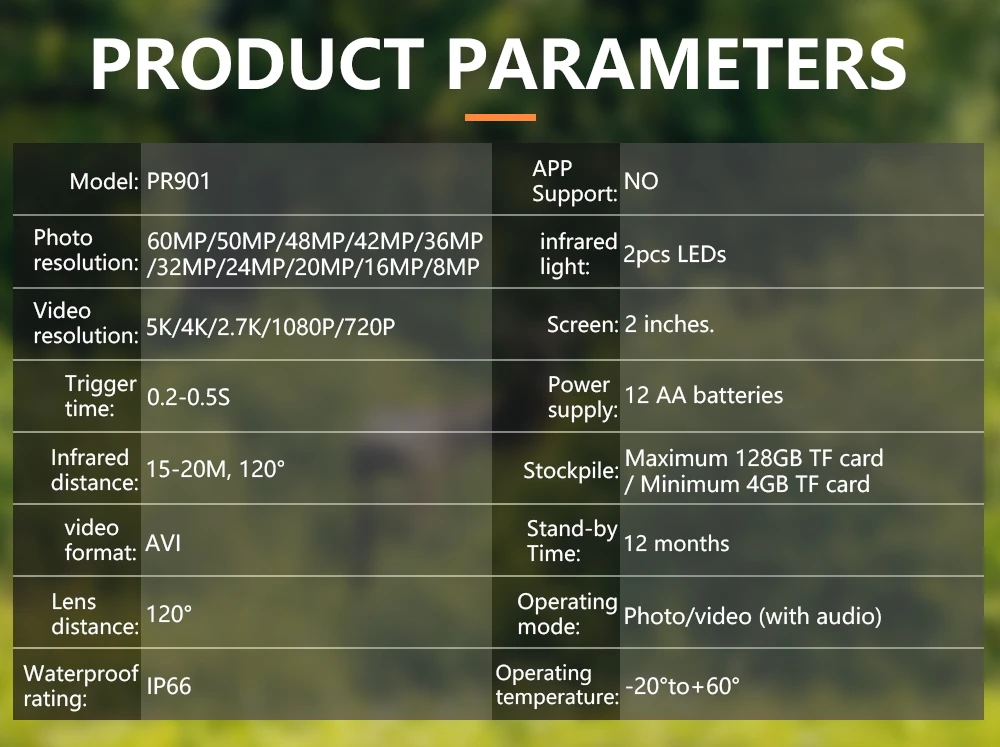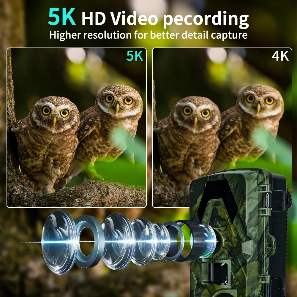 Cámara de rastreo infrarroja PR901 5K HD, cámara de juego de caza impermeable, aplicación TrailCam Go View de 60MP, descarga de fotos, observación de animales