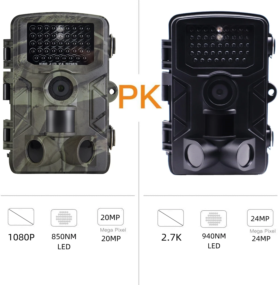 -Cámara con sensor PIR HD 120 K de 2,7 grados, admite resolución de imagen seleccionable de 24MP /16MP / 12MP, vídeo de 2,7 K 30fps. Estudio con cámara infrarroja para animales salvajes.