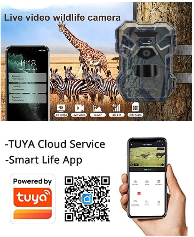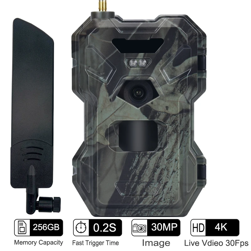 Cámara de rastreo de visión nocturna para exteriores, 4G, 30MP, HD, 2K, Control por aplicación, juego de trampa, cámara de rastreo de caza de 120 grados, cámara celular inalámbrica para vida silvestre