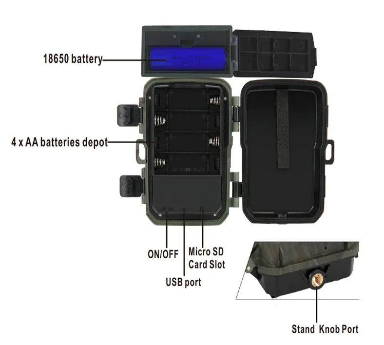*4.Velocidad de disparo más rápida de 0,3 segundos: la distancia de disparo puede alcanzar hasta 25 m (80 pies) durante el día y 20 m (65 pies) durante la noche.Una vez que se detecta movimiento, una velocidad de disparo ultrarrápida de menos de 0,2 segundos y 1-3 selecciones de disparo garantizan una captura rápida y precisa de cada movimiento detectado expuesto en el terreno de caza de la cámara de seguimiento del juego.