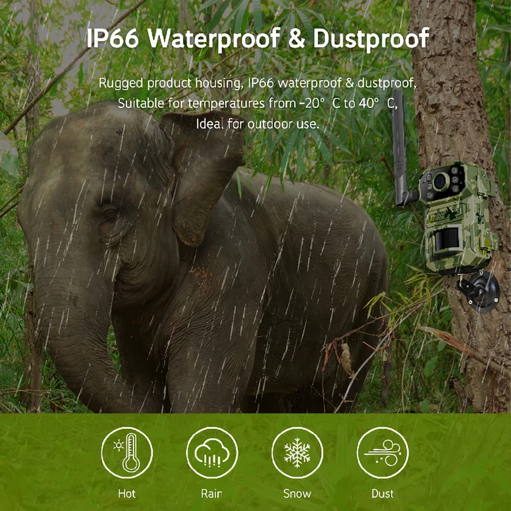Las cámaras de caza están diseñadas con una estructura única y materiales ecológicos.Cumple con el estándar de resistencia al agua IP66 para resistir todo tipo de clima al aire libre.No importa si es nieve o lluvia intensa, la cámara para ciervos funciona perfectamente.Es confiable y entre -25°C-60°C en la naturaleza.Satisface todos sus fines de observación de vida silvestre o exploración de ciervos.Fabricamos increíbles cámaras de seguimiento para que puedas ser un gran amante de la naturaleza.
