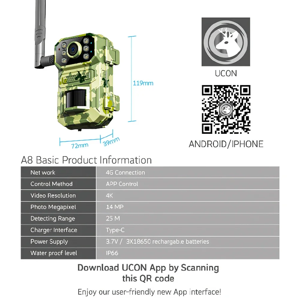 Alimentado por transmisión de datos 4G LTE.Una vez que la cámara se activa, se le enviarán imágenes o videos directamente a su aplicación móvil sin importar cuándo y dónde se encuentre.Le ahorra mucho tiempo para recuperar tarjetas SD y puede centrar sus esfuerzos en lo que es importante.Puede cambiar la configuración de la cámara desde la APLICACIÓN y dejar que se sincronice con su cámara de seguimiento a cientos de kilómetros de distancia (AT&T).Lo mejor para los amantes del aire libre ya sea que sean cazadores, observadores de vida silvestre o observadores de aves.