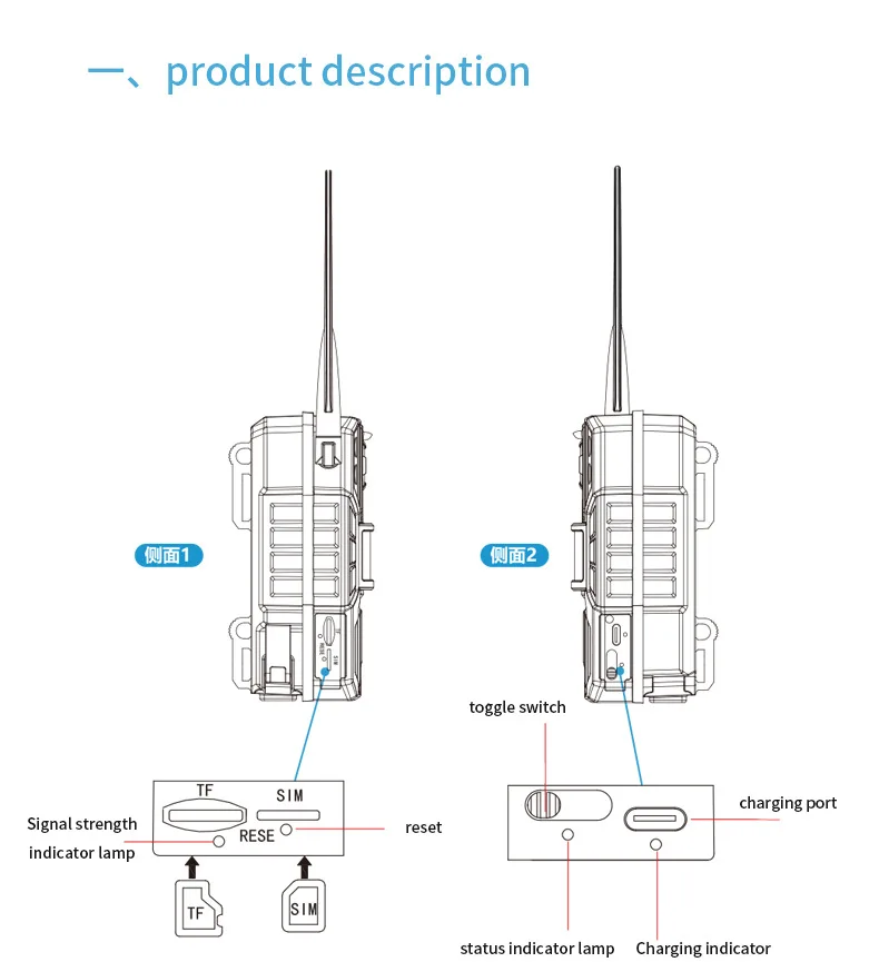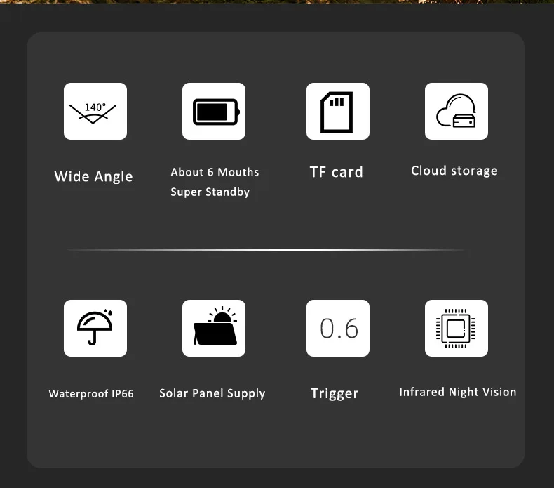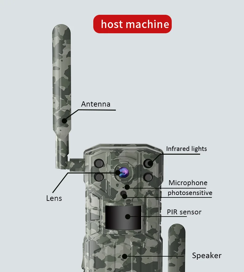 Fuente de alimentación solar + batería de litio incorporada (panel solar externo o adaptador de corriente opcional)