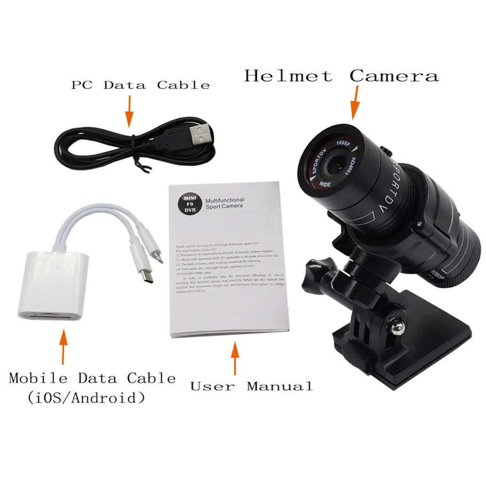 1.Fácil de transportar: ultraligera, fácil de transportar, la cámara para casco se puede utilizar como mini-desportivo DV.fácil de instalar en el casco,