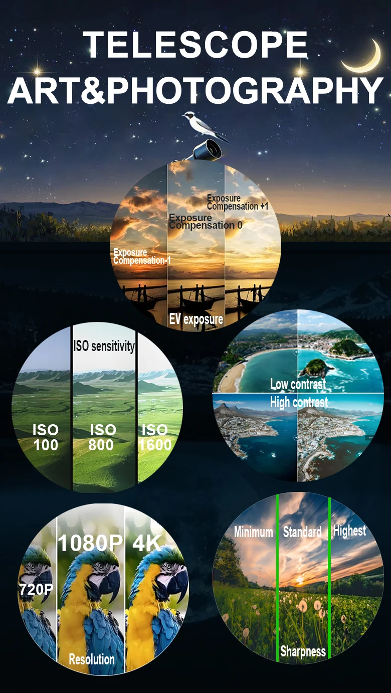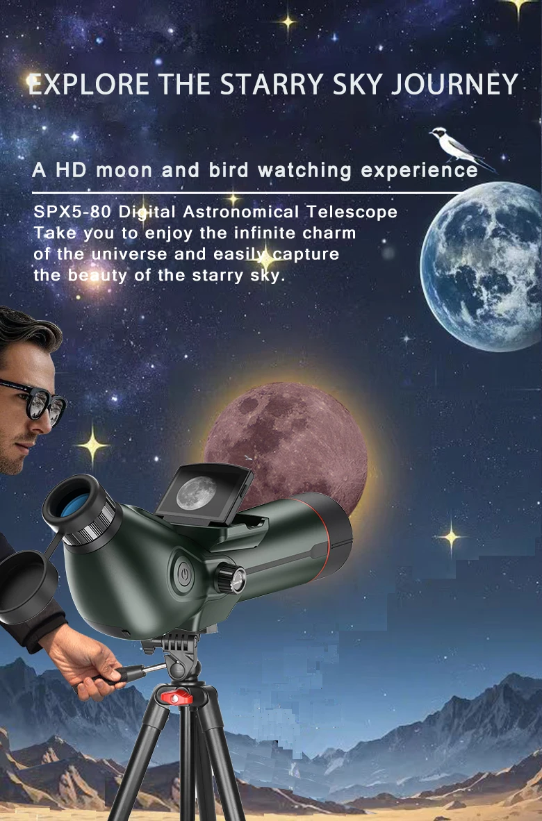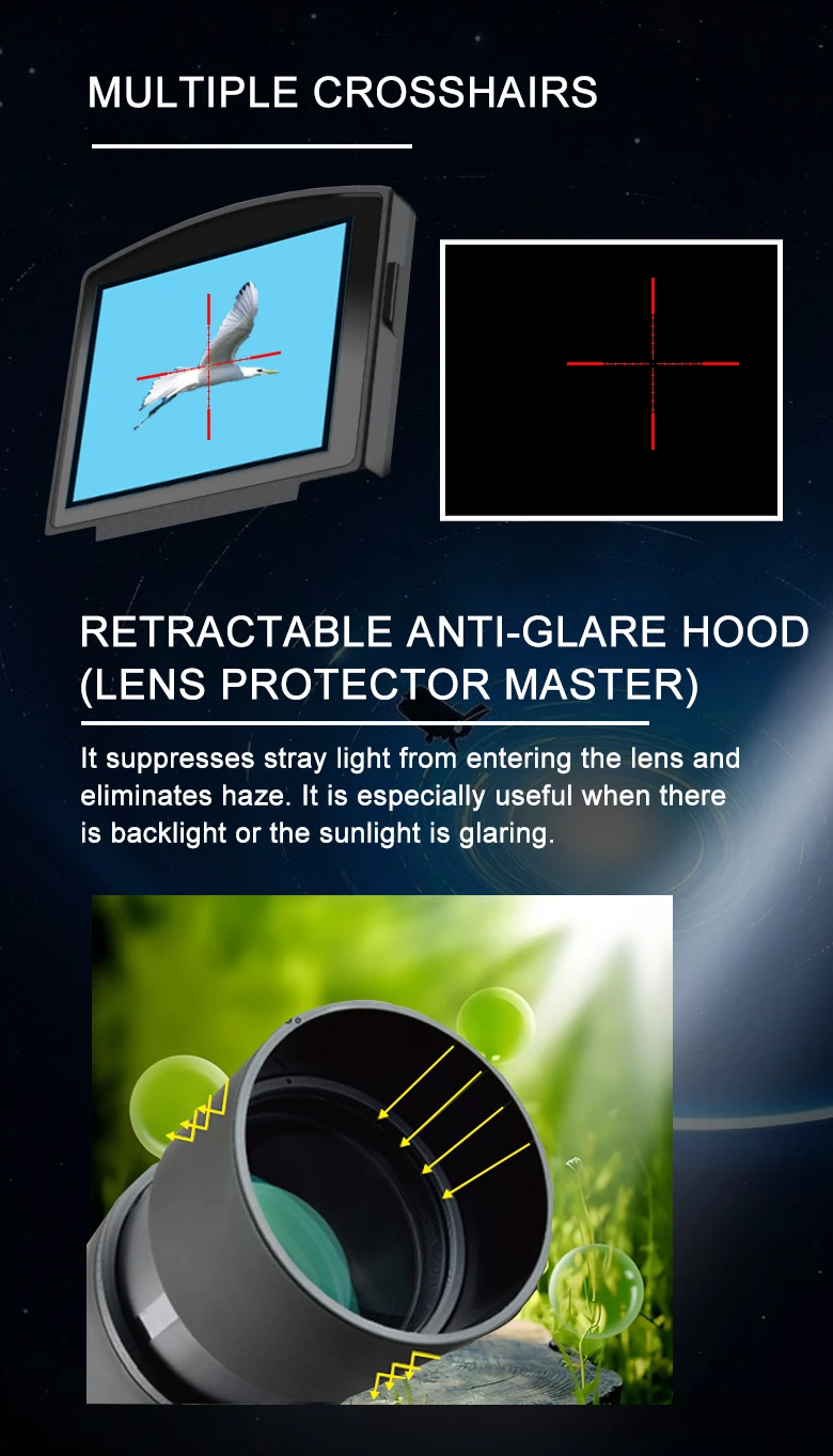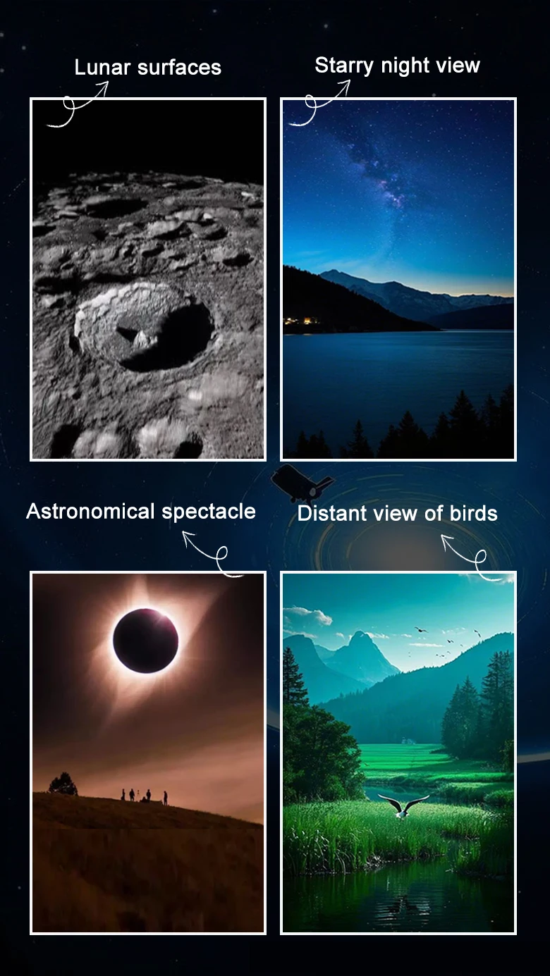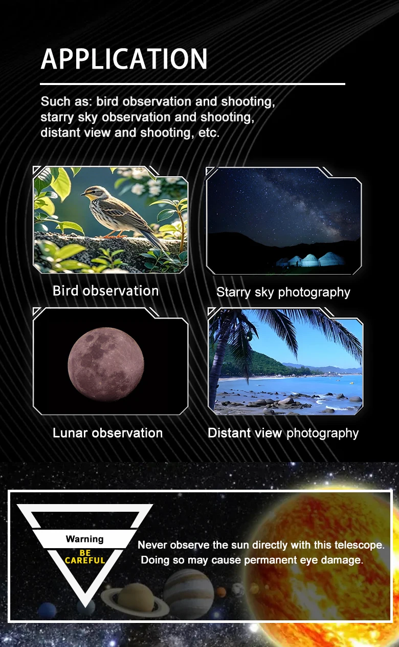 * Principales escenarios de aplicación: observación y fotografía de aves, observación y fotografía de estrellas, visualización y fotografía a larga distancia.