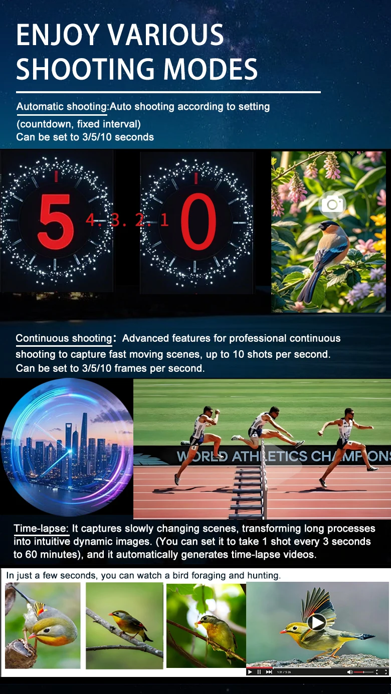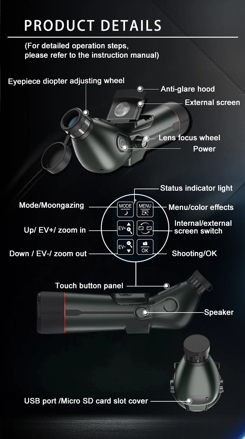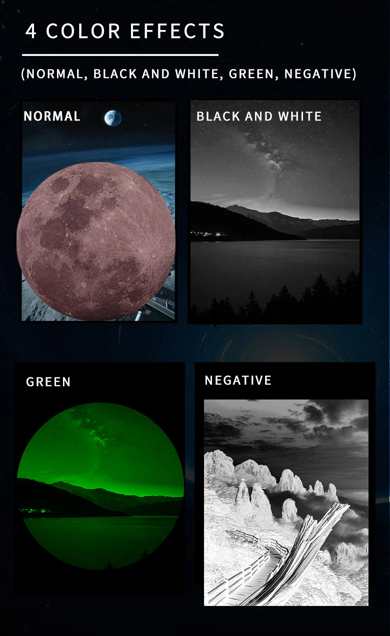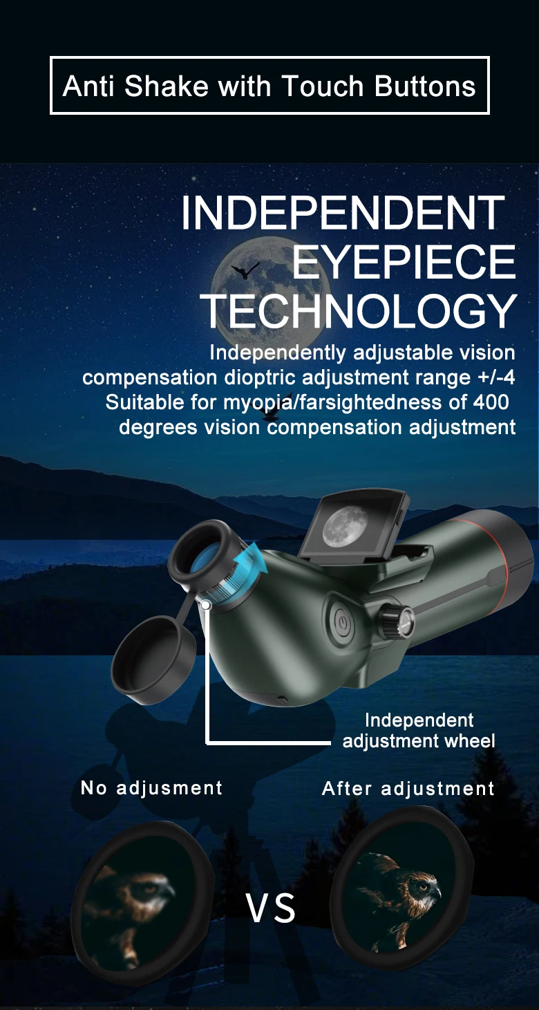 * Principales escenarios de aplicación: observación y fotografía de aves, observación y fotografía de estrellas, visualización y fotografía a larga distancia.