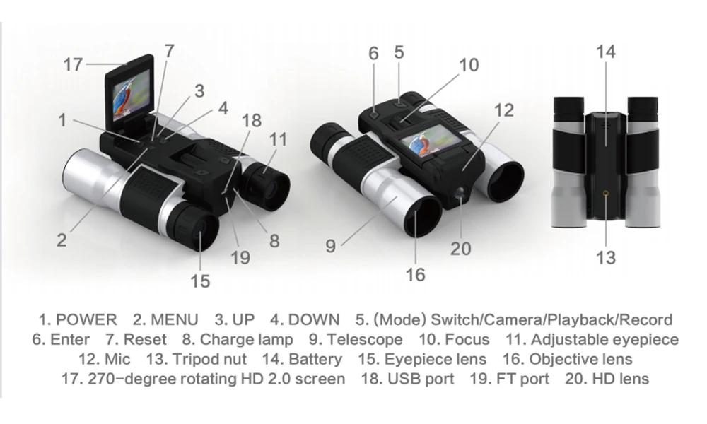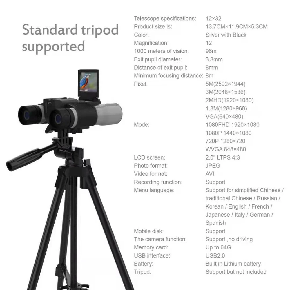 Cámara telescópica Digital 12x32 de 2,0 "con pantalla HD y grabación de vídeo, binoculares potentes para equipos de caza y Camping al aire libre