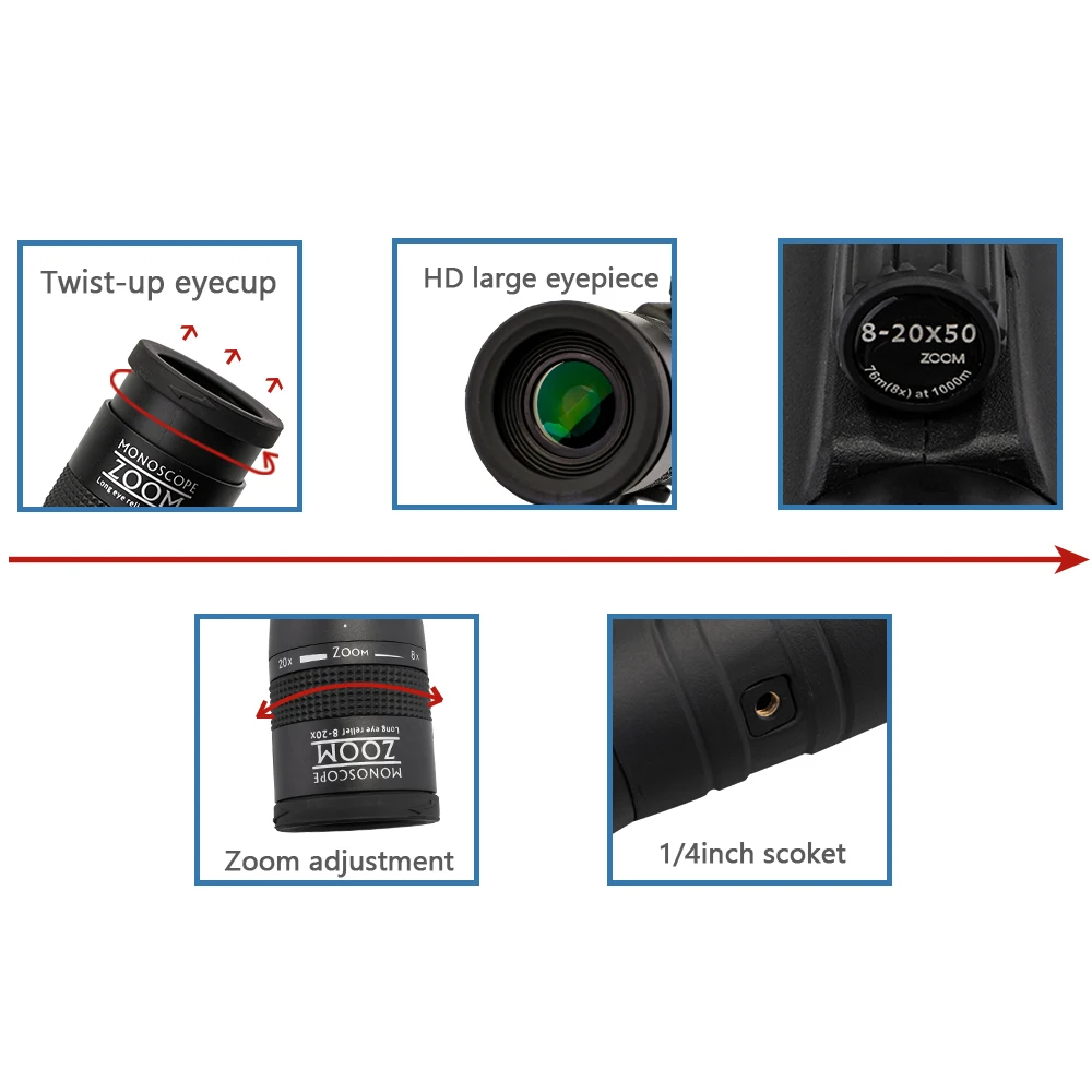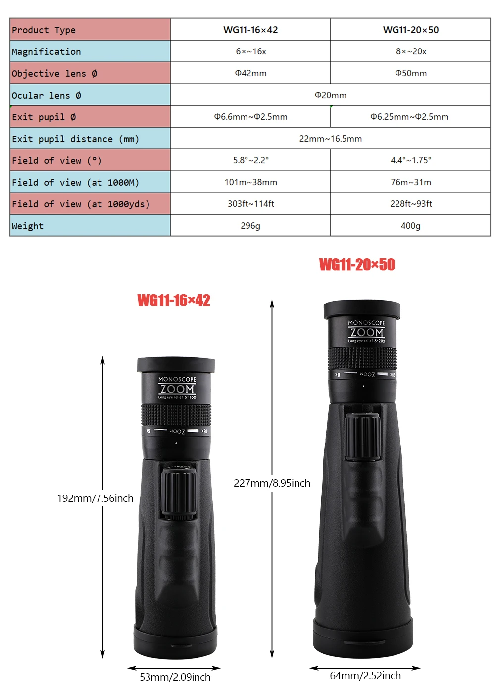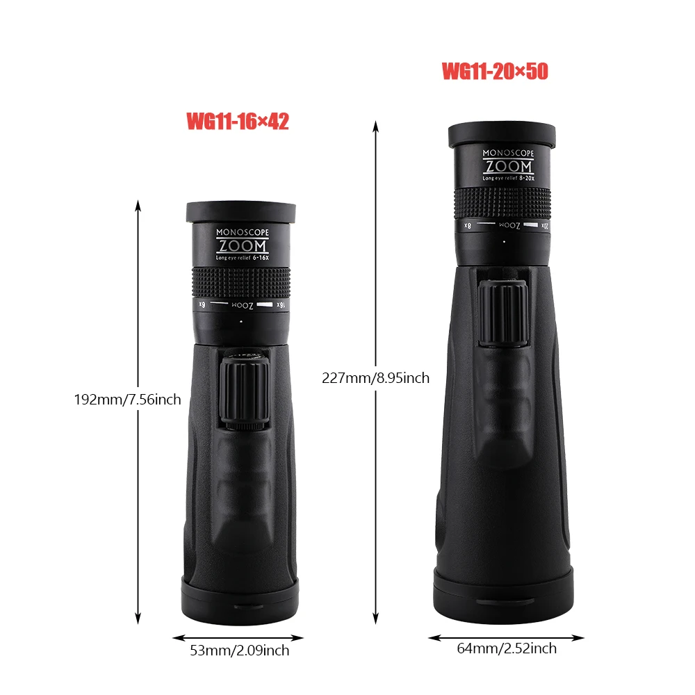 Cámara telescópica Monocular con Zoom WG11, Monoculares de caza impermeables monoculares con zoom de alta calidad, 8-20x50, para visualización de animales