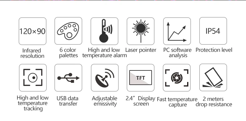 Las cámaras termográficas UTi120S son más rentables y también incluyen un rango de medición de temperatura más amplio en comparación con la serie Classic. Las funciones adicionales de Echo son la cámara digital y la mezcla térmica en modelos seleccionados. Esta serie también es muy fácil de usar y lo suficientemente resistente como para pasar las pruebas de caída IP65 y 2m.