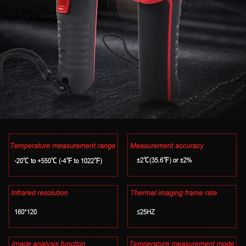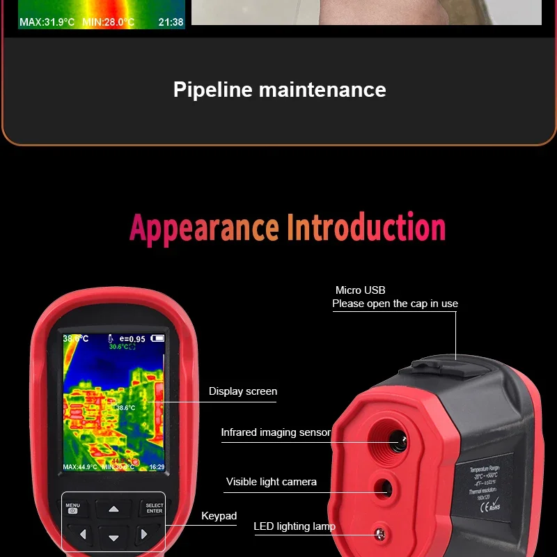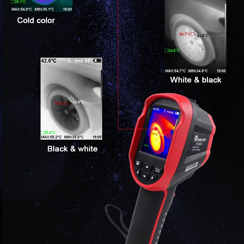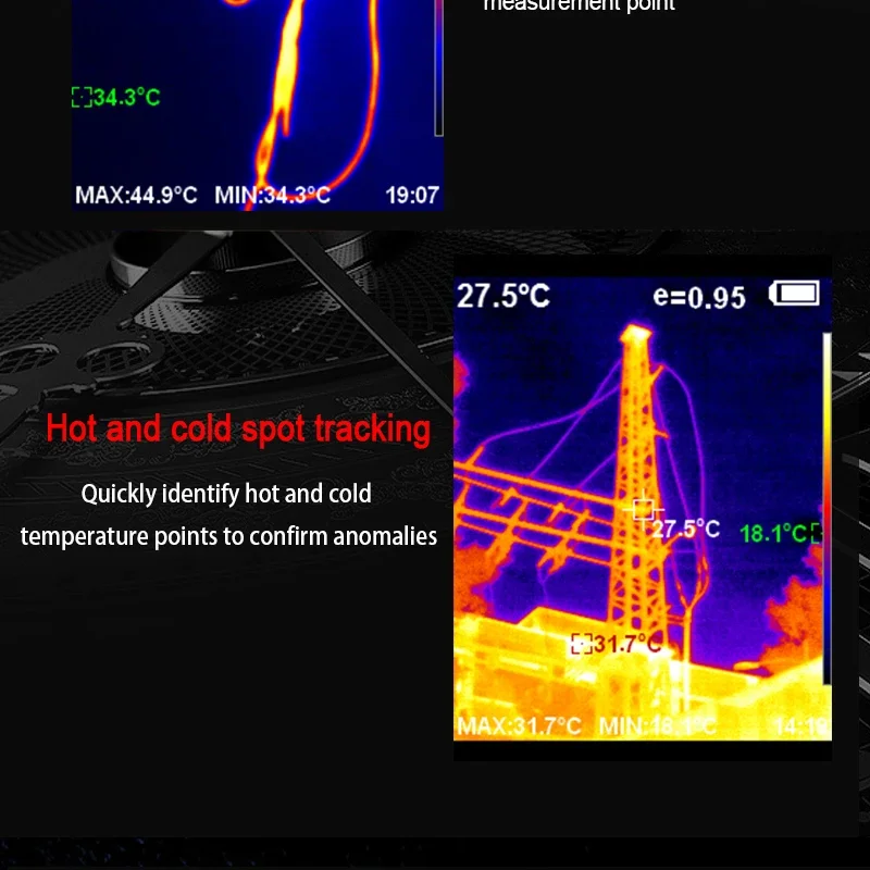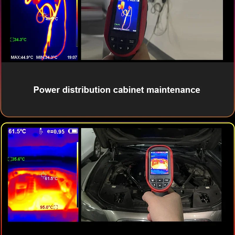 [Ampliamente utilizado]: En inspección de edificios, inspección de mantenimiento de vehículos, detección de temperatura de piezas de automóviles, detección de calefacción por suelo radiante, inspección eléctrica, detección de fallas de motores, monitoreo de temperatura de piezas industriales, etc.