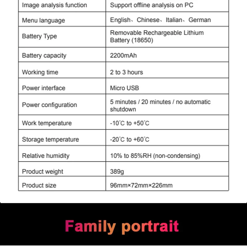 [Análisis de PC]: Admite la función de toma de fotografías y grabación de video, los datos se pueden enviar a la computadora a través de Micro USB, admite sistema winxp, win7, win8, win10 y admite análisis fuera de línea en computadoras.