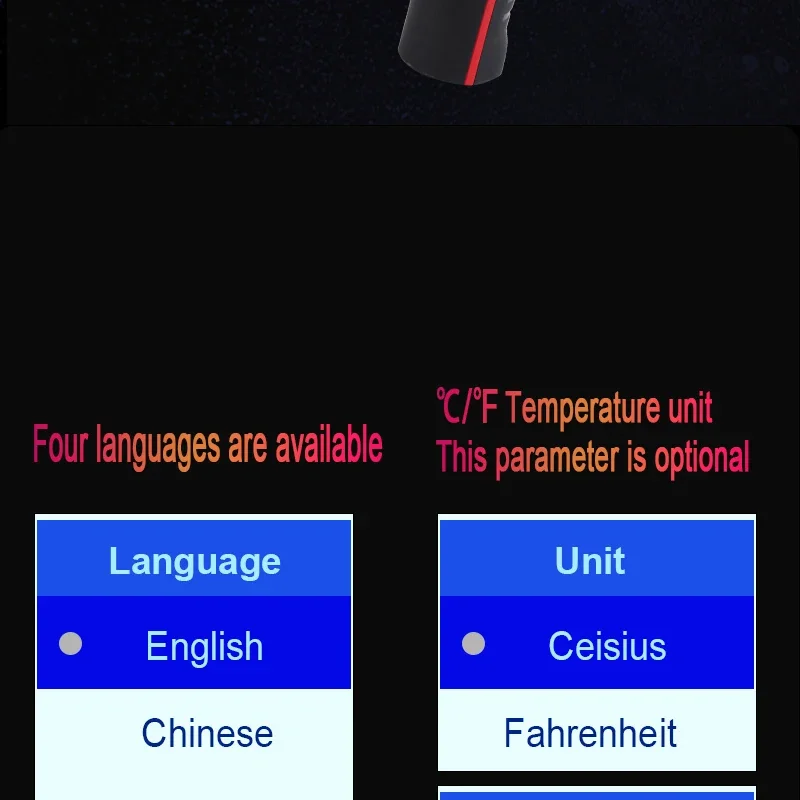 [4 idiomas]:Admite configuración de chino/inglés/alemán/italiano, hora y fecha, con luz LED.